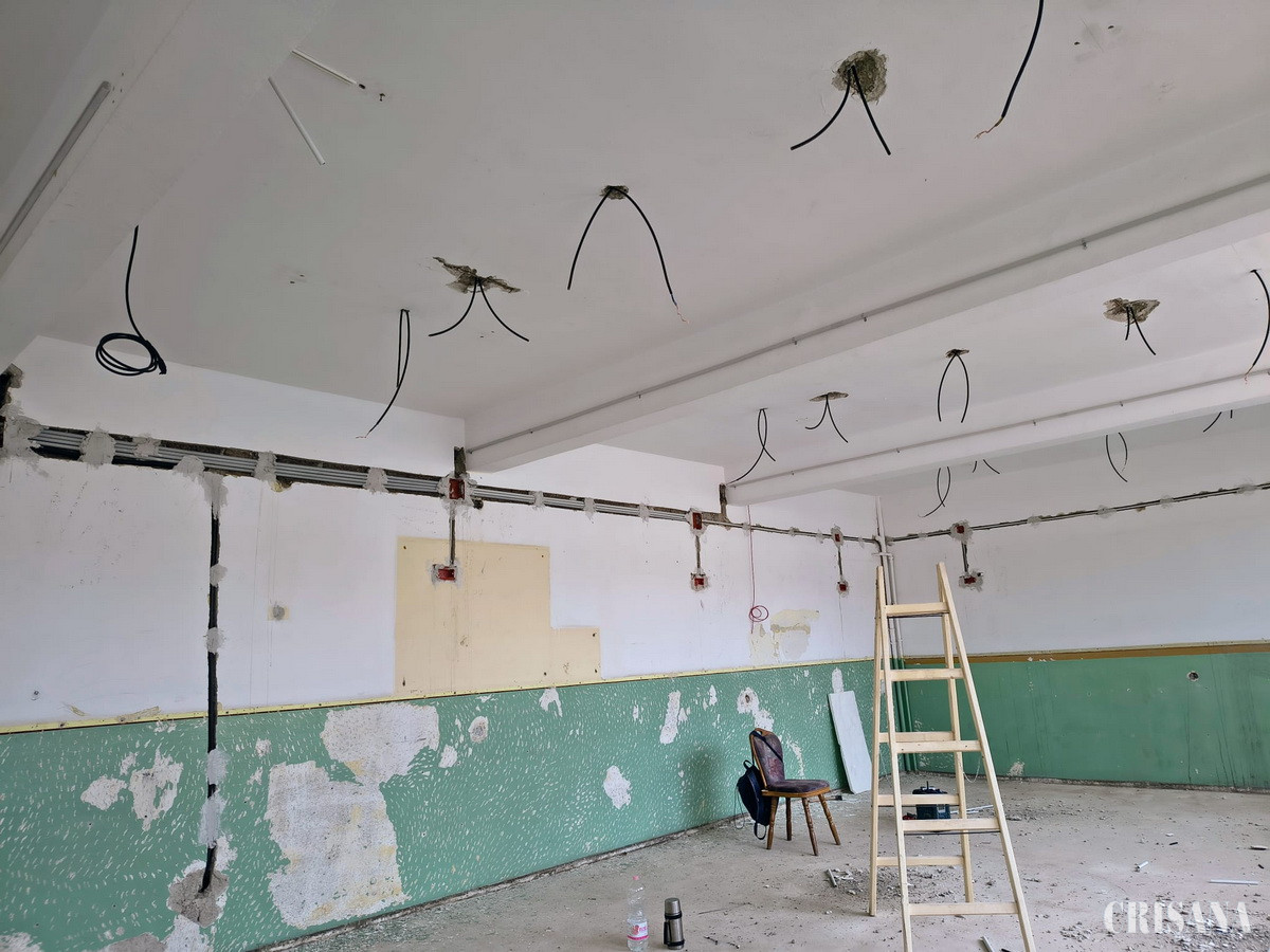 Până în prezent, în corpul principal al clădirii au fost realizate: demolări și desfaceri în proporție de 70%; instalații electrice - 70%; instalații sanitare - 25%; anveloparea termică a fațadei principale - 40%; turnarea șapei mecanizate - 30%.
