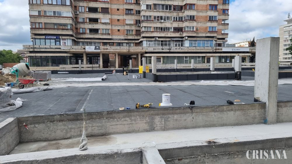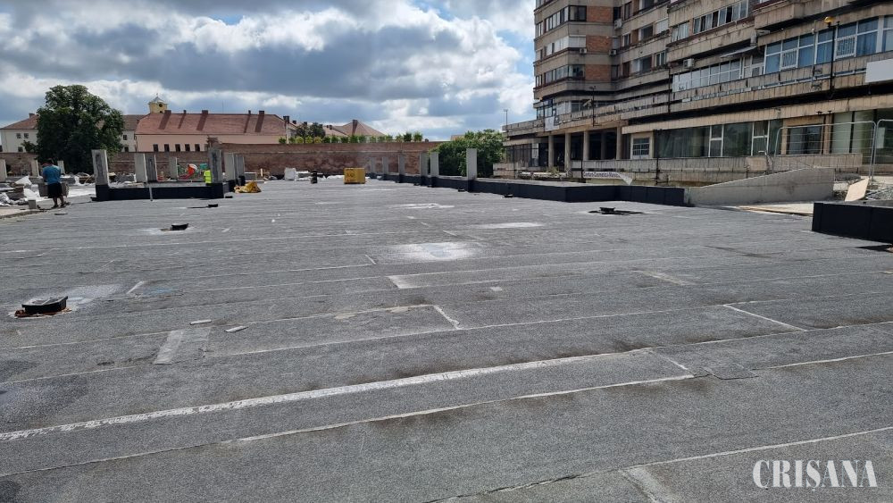 Piațeta de deasupra parcării subterane de lângă Catedrala Ortodoxă, mai exact, zona dinspre Banca Românească, începe să prindă contur, fiind montat deja pavajul de porfir pe o suprafață de 250 mp.