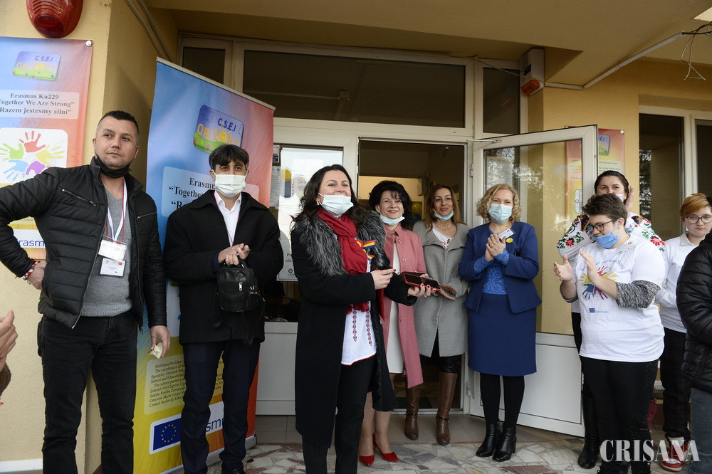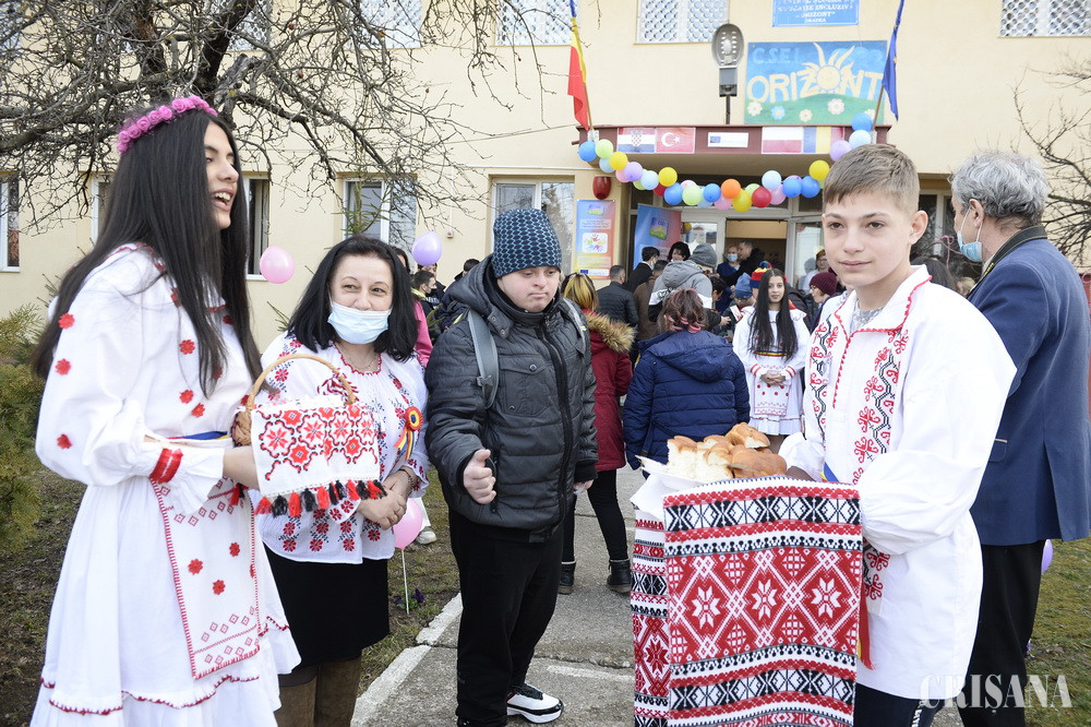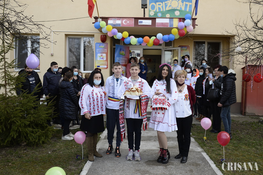 În cadrul proiectului Erasmus "Together We Are Strong", profesori și elevi de la instituțiile școlare partenere, reprezentanți ai Consiliului Județean Bihor și ai IȘJ Bihor au fost întâmpinați joi, 3 martie, cu pâine și sare la intrarea în Centrul Școlar de Educație Incluzivă "Orizont" Oradea.
