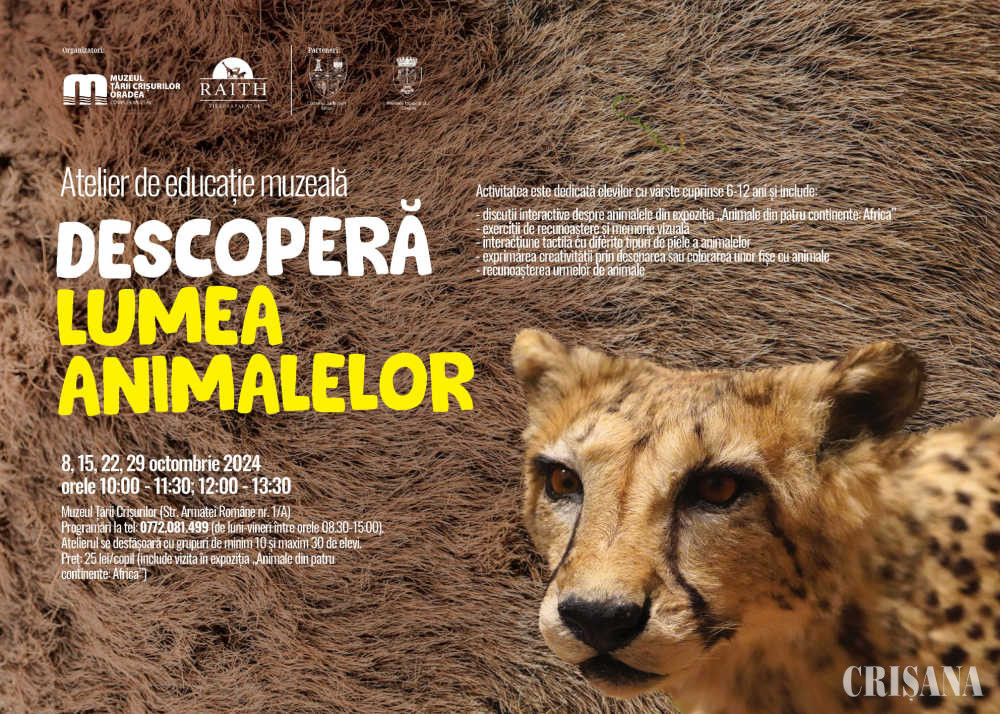 Muzeul Țării Crișurilor Oradea - Complex Muzeal împreună cu Präparator Raith GmbH organizează, cu sprijinul Consiliului Județean Bihor și al Primăriei Municipiului Oradea, atelierul de educație muzeală „Descoperă lumea animalelor”.