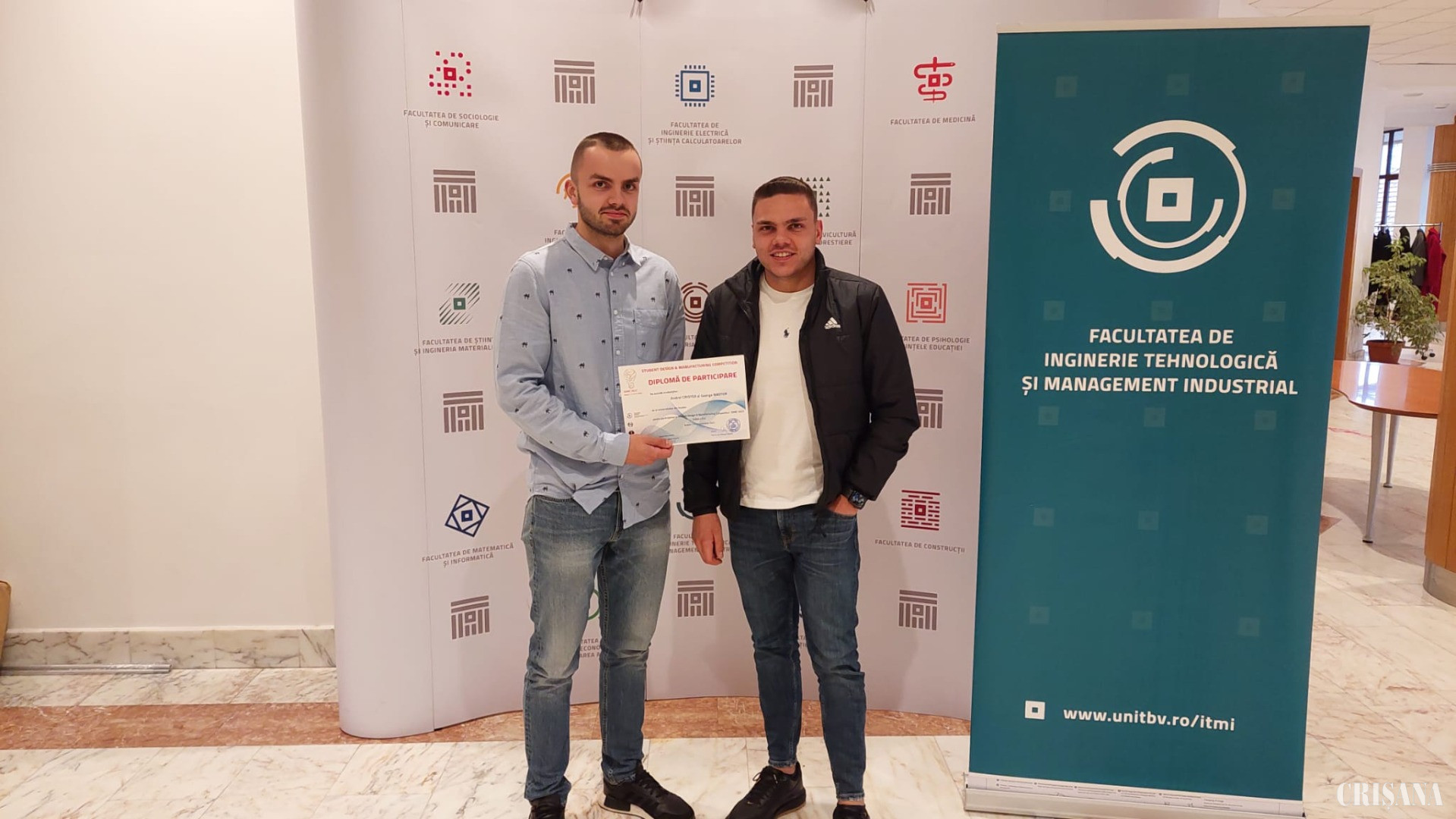 Echipa formată din studenții specializării Tehnologia Construcțiilor de Mașini (TCM), Gabriel Prada (4TCM) și Mihai Tămăşan (3TCM), a obținut menţiune cu lucrarea „Proiectarea asistată de calculator a ansamblului șurub - piuliță - sistem CAE/ CAD”. Proiectul realizat este o soluție software originală, care integrează module de tip CAE și CAD în vederea obținerii unui sistem performat de proiectare asistată de calculator.