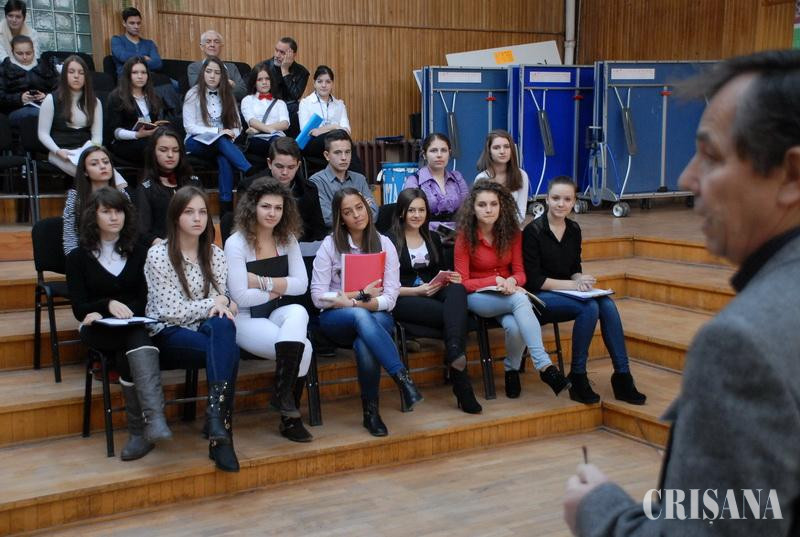 Prima etapă a proiectului "Să-l cunoaştem pe Nichita Stănescu" a avut loc, ieri, în sala festivă a Liceului "Onisifor Ghibu", la care au parte aproximativ o sută de boboci. "Din păcate, noi am constatat în ultima perioadă că elevii nu mai citesc aşa cum o făceau înainte şi nu mai cunosc poezia românească. Pentru a le stimula elevilor dragostea pentru citit, dar şi pentru că se împlinesc 30 de ani de la moartea marelui poet Nichita Stănescu, ne-am gândit să organizăm câteva momente speciale", a spus, pentru Crişana, Mihai Vesa, coordonatorul proiectului. Alături de el, la proiect au mai contribuit şi profesorii de limba şi literatura română Alexandru Popovici şi Nicoleta Cipleu, profesoara de matematică Mariana Vesa şi profesoara de limba engleză Alina Simuţ. "Proiectul este organizat în două etape, prima, prin care ne propunem să îl cunoaştem pe Nichita Stănescu, şi a doua, în care vom intra mai adânc în creaţia poetului. În urma unui atelier pe care l-am organizat săptămâna trecută, elevii au învăţat să recite poezii şi să prezinte secvenţe muzicale care au la bază opera lui Nichita. În cea de-a doua etapă, care va avea loc în aprilie, elevii vor prezenta aspecte ale limbajului artistic care au adus un suflu nou şi au introdus concepte noi în poezia românească", a spus profesoara de limba şi literatura română Nicoleta Cipleu.