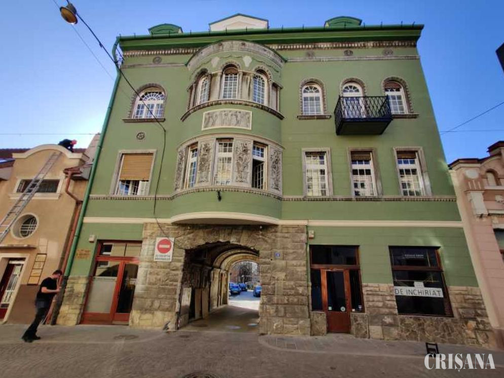 Clădirea în stil eclectic cu detalii neorenascentiste a fost construită în anii 1927-1928, denumirea originală a imobilului fiind „Casa Heyman”. Proiectantul edificiului a fost arhitectul Adalbert Heyman (Bela Heyman), comanditar fiind Luiza Heyman (mama arhitectului), constructorul fiind necunoscut. În 1910, terenul și construcțiile aparțineau Luizei Heyman, văduva lui Iosif Heyman, mama arhitectului Adalbert Heyman. Până în 1944, în afara proprietarei din acte, au mai locuit aici, la etajul 2 (conform istoricului Mircea Pașca – „Arhitecți uitați din Oradea interbelică”), și Eva Heyman (fiica arhitectului Adalbert Heyman) împreună cu mama sa, Agnes Racz.