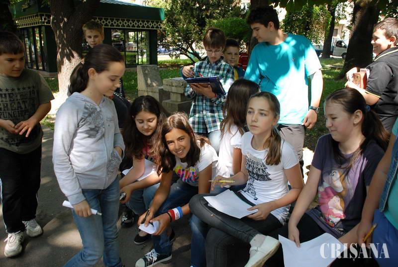 Aleile parcului Libertăţii (la câţiva metri de Podul Intelectualilor) s-au umplut ieri de veselie şi voie bună pentru aproximativ o oră. Elevii unei clase de-a V-a de la Şcoala „Oltea Doamna", însoţiţi de prof. Liliana Bocoi, au ieşit pe malul Crişului pentru a-şi face fişele de observaţii la lecţia „biosfera" de la disciplina geografie. Micuţii au privit cu atenţie malurile apei şi şi-au notat conştiincios în caiete ceea ce au văzut. „Copiii îşi fac fişe de observaţii pentru portofoliul personal privind biosfera. I-am adus pe malul Crişului pentru ca să vadă diferenţele dintre un mal de apă amenajat şi unul sălbatic", a explicat, pentru Crişana, profesoara de geografie Liliana Bocoi. Evenimentul a fost o bucurie nu doar pentru copii, ci şi pentru trecătorii care s-au oprit, privindu-i îndelung şi mirându-se de seriozitatea micuţilor.