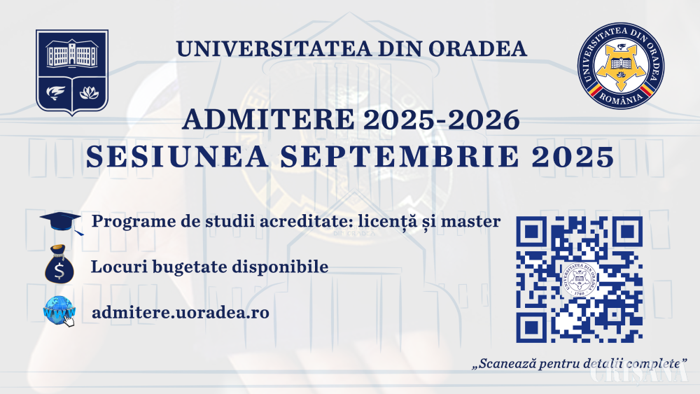 „Rezultatele obținute în sesiunea de admitere din iulie confirmă interesul tot mai mare al tinerilor pentru a studia la Universitatea din Oradea, un brand recunoscut pentru sustenabilitate. Sesiunea din septembrie este o nouă oportunitate pentru cei care își doresc să devină liderii de mâine, beneficiind de programe atractive de studiu, inclusiv în limba engleză.”, declară rectorul Universității din Oradea, Constantin Bungău.