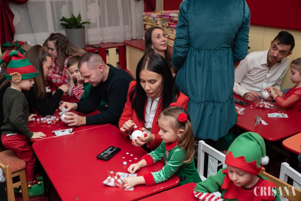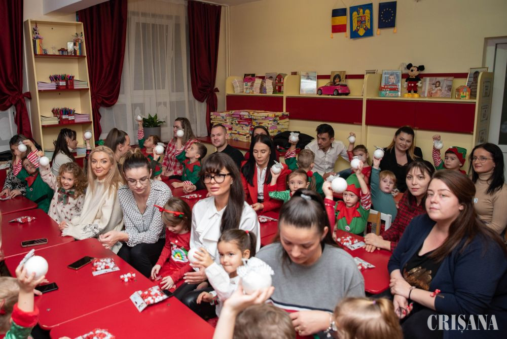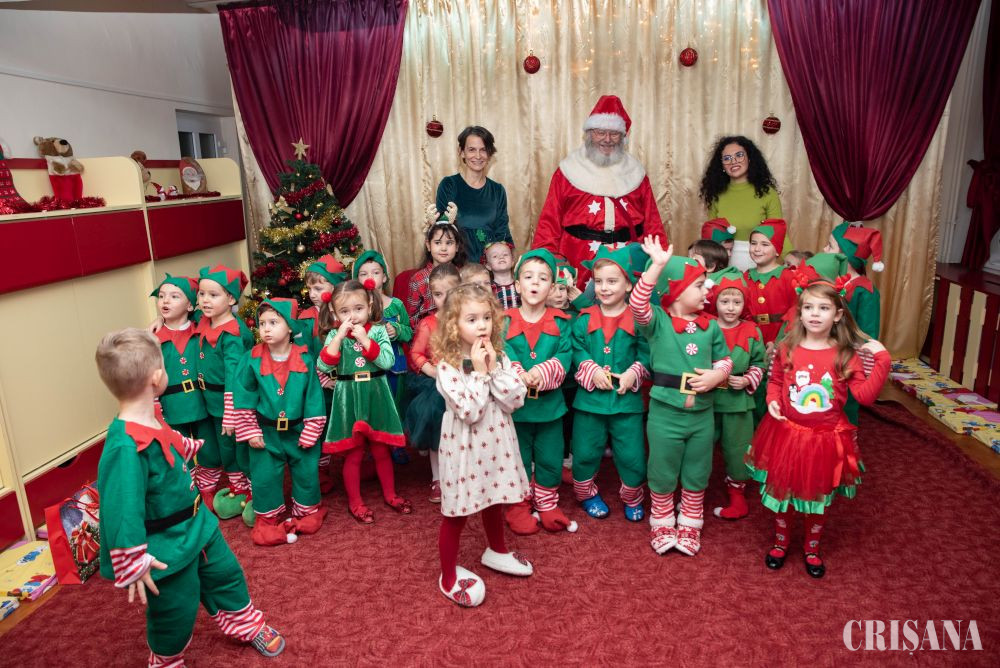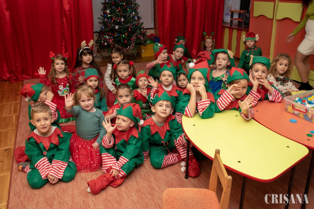 Astfel, „spiridușii” grupei mijlocii B, sub atenta îndrumare a doamnelor profesoare în educația preșcolară Teodora Negruț și Ardelean Oana, au pregătit un moment artistic în așteptarea lui Moș Crăciun. Astfel, micuții îmbrăcați în costume de spiriduși s-au oferit în acest an să fie ajutorul Moșului. Au cântat cântecele dedicate Moșului atât în limba română, cât și în limba engleză, ajutați de doamna profesoară de limba engleză - Oana Simuț și au dansat pe muzică de sezon coordonați de către instructorul lor de dans, Andrei Culda. Mai apoi, împreună cu părinții lor, au confecționat un glob de Crăciun, care urmează a fi atârnat în bradul fiecăruia de acasă.