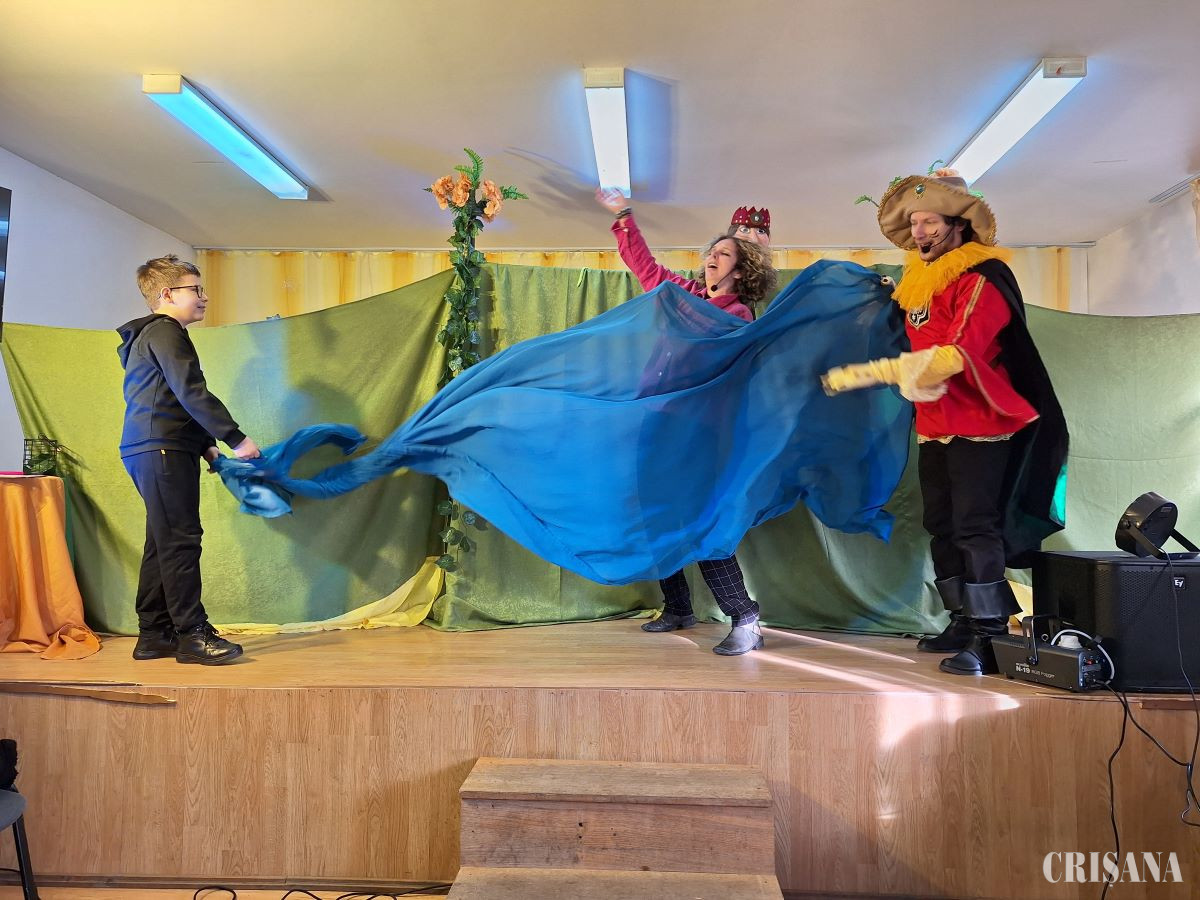 Trupa „Comoara cu Povești” Oradea a construit un spectacol participativ, în care publicul nu a fost tratat ca simplu receptor, ci ca partener de joc. Reacțiile copiilor au devenit parte din ritmul reprezentației, nu simple intervenții spontane. A rezultat o formă de atenție activă rar întâlnită: copiii nu doar au urmărit acțiunea, ci au completat-o firesc.