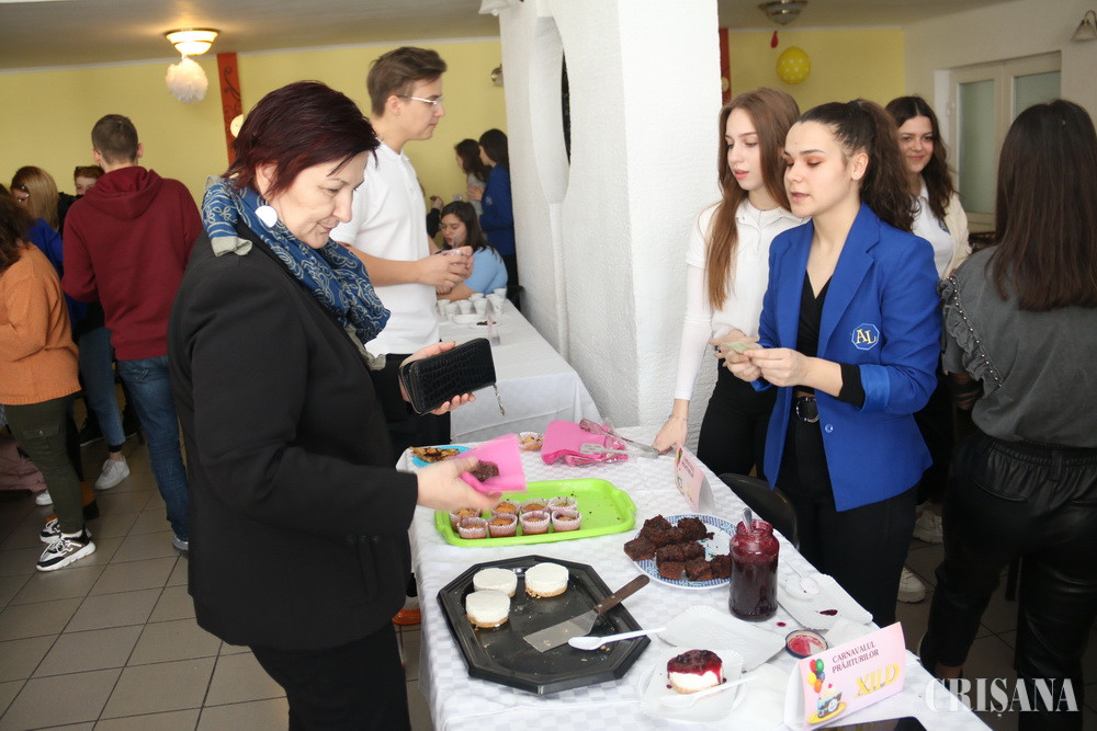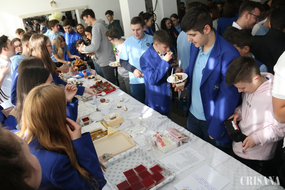 Carnavalul prăjiturilor a avut loc la ora 11.00 în sala de mese a liceului. Evenimentul a fost organizat de Consiliul Școlar al Elevilor și profesoara Rodica Turcaș, juriul fiind compus din profesoarele Olga Trif și Ioana Mladin și elevii Patricia Ilea, Katerina Ardelean și Ștefania Baczoni – președinta Consiliului Școlar al Elevilor. Fiecare clasă a participat cu cel puțin o prăjitură făcută de elevi împreună cu mămicile sau bunicile lor. Premiul pentru „Cel mai bogat sortiment de prăjituri” l-a primit clasa a V-a, pentru „Cea mai lăzăristă prăjitură” – clasa a IX-a A, pentru „Cea mai aspectuoasă prăjitură” – clasa a XI-a B, pentru „Cea mai dulce prăjitură” – clasa a X-a A, pentru „Cea mai tradițională prăjitură” – clasa a XII-a C, pentru „Cea mai fructată prăjitură” – clasa a X-a D, pentru „Cea mai originală prăjitură” – clasa a IX-a B, pentru „Cea mai veselă brioșă” – clasa a VI-a, pentru „Cea mai armonioasă prăjitură” – clasa a VIII-a și pentru „Cea mai inovativă prăjitură” – clasa a IX-a C. Toate clase au primit diplome de participare.