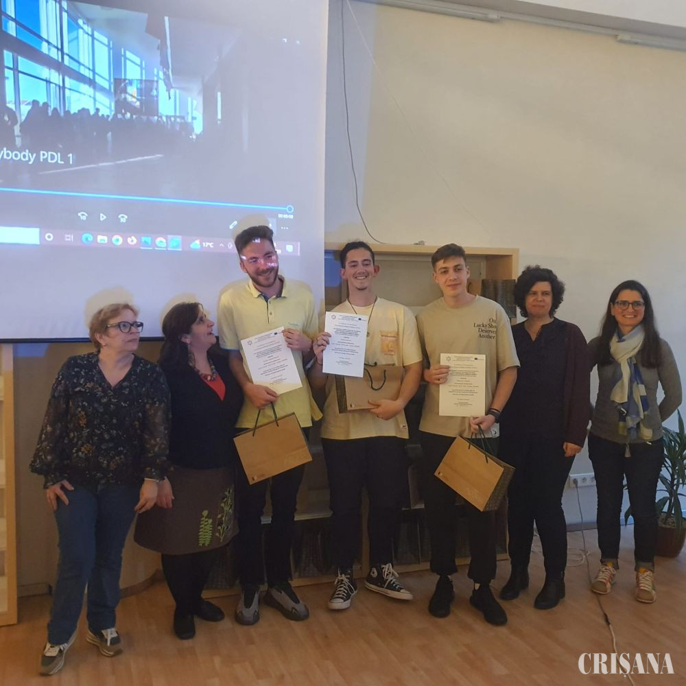 Participanții la mobilitate: Andrei Andrica, Alexandru Negruț și Teodor Pantea au fost insoțiți de cele două cadre didactice - prof. dr. Carmen Chira și prof. ing. Viorel Muscaș.