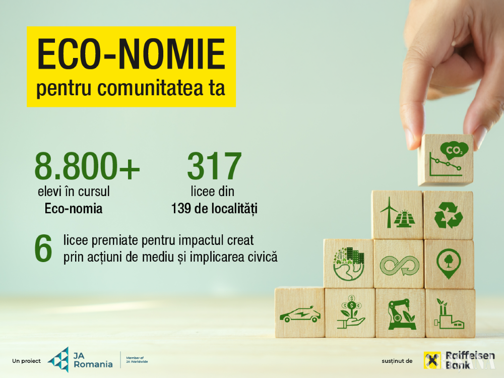 „Eco-nomie pentru comunitatea ta” completează programul național susținut de Raiffeisen Bank și Junior Achievement România, dedicat formării abilităților de economisire și gestionare responsabilă a resurselor, adaptat fiecărui nivel educațional.