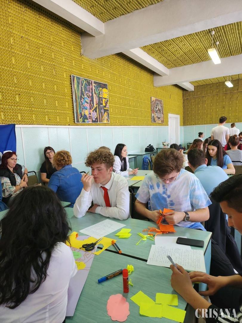 Intitulat „Erasmus+ Acreditare la final de an”, evenimentul a debutat cu workshop-ul „WE R 4 the change” la care au participat toți elevii beneficiari ai unei mobilități în cadrul proiectului „Pentru o școală prietenoasă, digitală și verde”. Tinerii, împărțiți pe grupe eterogene în funcție de țara în care au realizat deplasarea, au conceput cu multă creativitate și ingeniozitate postere pe care au consemnat idei care ilustrează sloganul „We make the change”, și pe care apoi le-au prezentat în fața colegilor. În încheierea activității, profesorii conducători de grup au înmânat elevilor certificatele de participare.