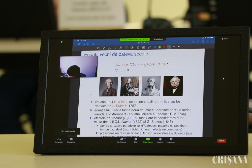 Conferința „Existența unor soluții slabe paradoxale în mecanica fluidelor”, susținută miercuri, online, de Vlad Vicol, profesor de matematică la Courant Institute din New York, în prezența unor matematicieni din Oradea și Cluj a fost, conform prorectorului Sorin Borza, „un eveniment academic de cea mai bună calitate”.