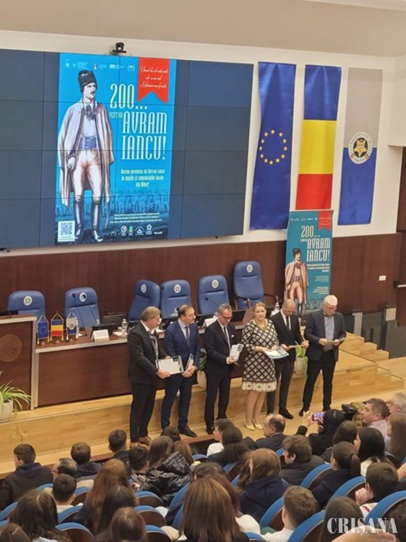 Aula Magna a Universității din Oradea a fost, vineri, 14 noiembrie, plină de elevi, studenți și cadre didactice, veniți cu toții pentru a lua parte la festivitatea de acordare a diplomelor atribuite unităților școlare participante la proiectul județean cu participare internațională „200… pentru Avram Iancu!”.