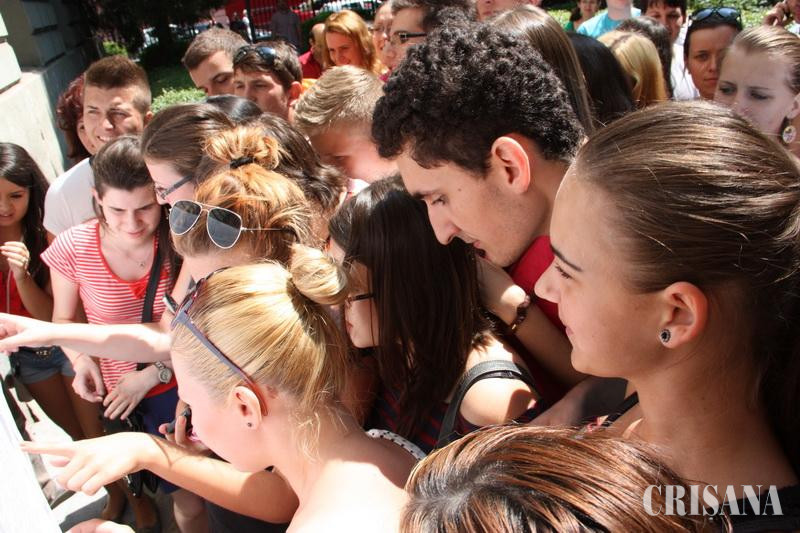 La Colegiul Naţional "Mihai Eminescu" rezultatele au fost postate ieri, la ora 12.00, pe două panouri mari. Elevii erau în general satisfăcuţi, fie se îmbrăţişau cu colegii, fie gesticulau în faţa telefonului de parcă în acest fel erau mai convingători pentru cei de la celălalt capăt al firului. Într-un alt grup, unii elevi făceau mişto de ideea de a contesta notele în timp ce alţii trăgeau cu sete din ţigări. "Rezultatele sunt în general bune, dar eu sunt nemulţumită de nota primită la limba română. O să fac contestaţie", a spus Bianca Crăciun. Colega ei, Laura Gherman, a spus că nu are ce să le reproşeze celor care au corectat. "Probele au fost accesibile pentru cei care au învăţat. Sunt pe măsura muncii fiecăruia dintre noi". Pentru Ioana Brândaş rezultatul ar fi fost o problemă doar dacă nota era mai mică de 8. "Eu aplic pentru un post la o Facultate de Drept Internaţional din Londra şi acolo mi s-a cerut să am notă mai mare de 8. Am luat peste 9, aşa că nu va fi o problemă. Am ales acea facultate pntru că ştiu că acolo se face şcoală serioasă şi pentru că la finalizarea studiilor am un loc de muncă asigurat", a spus absolventa. Conform rezultatelor afişate pe site-ul IŞJ Bihor, singura notă de 10 din Bihor a fost obţinută de Alexandra-Georgiana Vid, de la Colegiul Naţional "Mihai Eminescu".