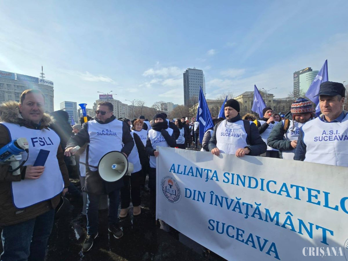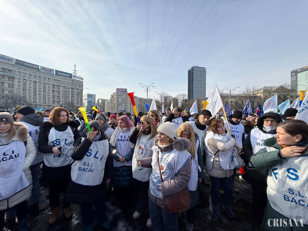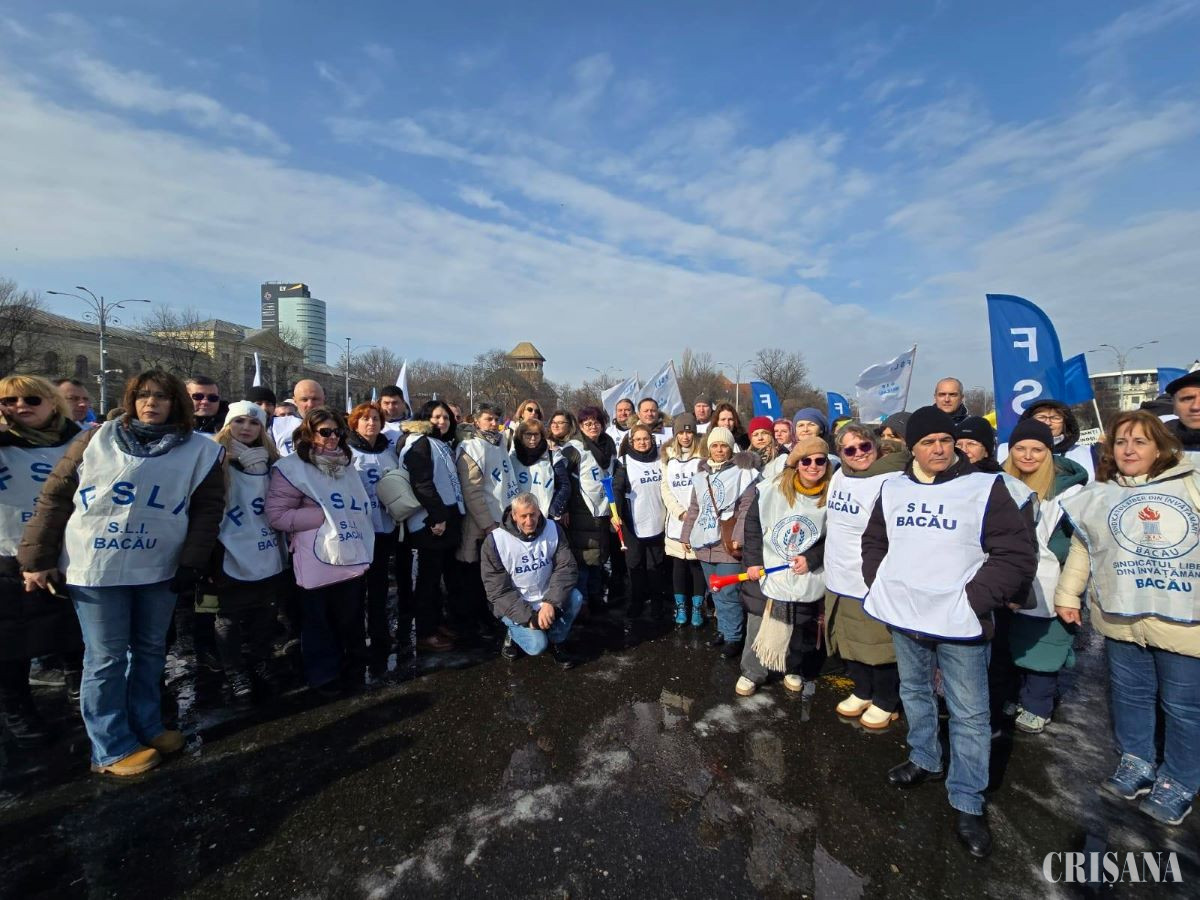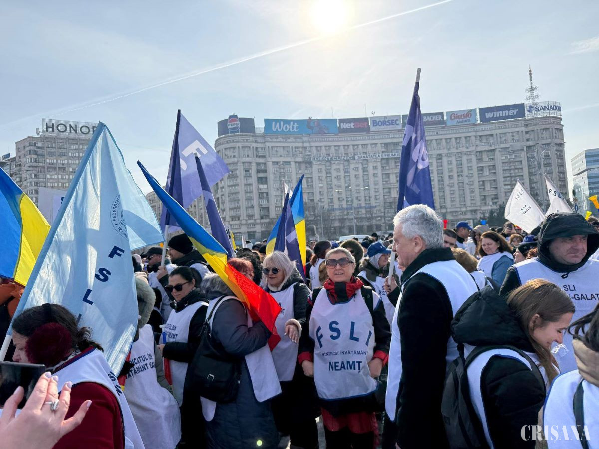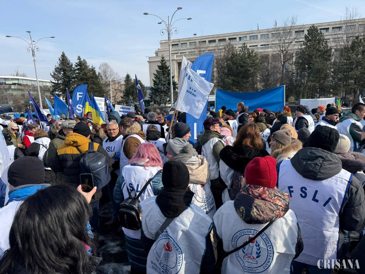 Membri ai Federației Sindicatelor Libere din Învățământ, Federației Sindicatelor din Educație „Spiru Haret” și Federației Naționale Sindicale „Alma Mater” au protestat miercuri, în fața Palatului Victoria, nemulțumiți de măsurile adoptate de Guvern care influențează salarizarea, condițiile de muncă, statutul și demnitatea profesiei didactice.
