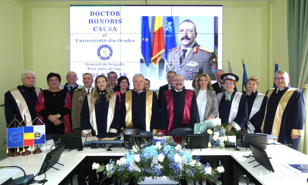 „Azi, ne bucurăm de două ori”, a spus, marți – 18 februarie 2025, președintele Senatului Universității din Oradea, conf. univ. dr. Aurel Căuș. „Ne bucurăm să avem în rândurile noastre un reprezentant al Armatei Române și, în aceeași persoană, un exponent al excelenței în educația românească, general de brigadă prof. univ. dr. ing. Ghiță Bârsan, comandantul rector al Universității Academia Forțelor Terestre «Nicolae Bălcescu» din Sibiu”.