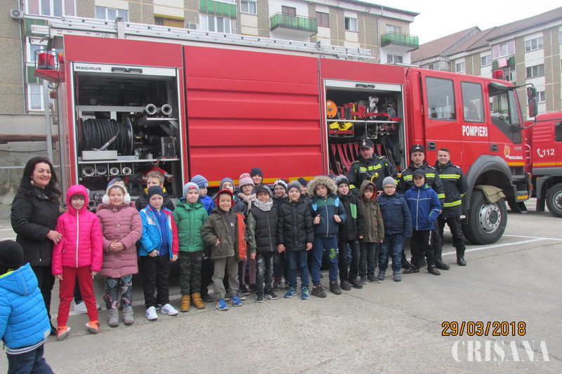 Ziua de joi a sosit. Era momentul mult așteptat. Vizita la stația de pompieri situată pe str. Aluminei. Aici am asistat la o demonstrație și o testare a echipamentului tehnic. Am avut ocazia să intrăm în mașinile de pompieri și să vedem în acțiune pompierii. Ei au făcut o demonstrație a unei operațiuni de salvare. A fost o senzație. Pompierii cu ajutorul unui dispozitv în formă de foarfecă au îndepărtat ușa și au dus la bun sfărșit misiunea de salvare. Alt moment formidabil a fost când am manevrat furtunul de apă. Eu și colegii mei așteptăm cu nerăbdare să ne întoarcem și anul viitor.