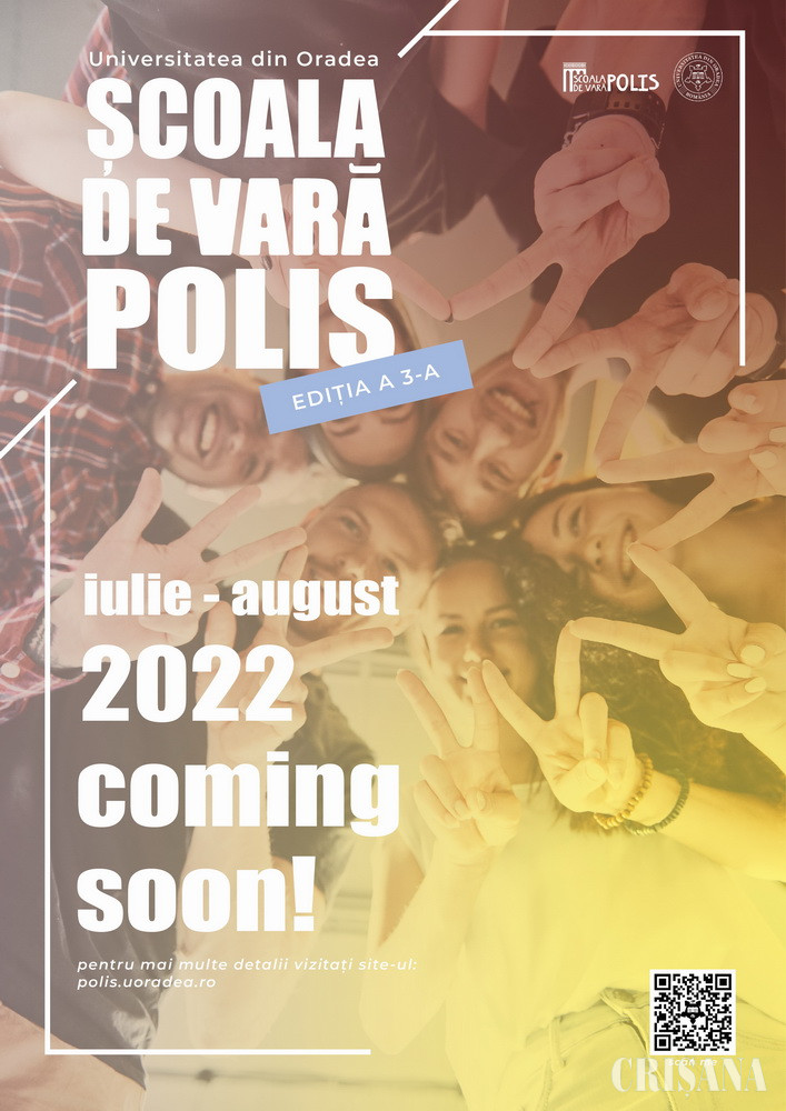 Aflată la cea de-a III-a ediție, Școala de vară „POLIS” se va desfășura în intervalul 18-31 iulie, cu prezență fizică. Anul acesta, viitorii studenți au la dispoziție 90 de locuri și tot atâtea paturi în căminele Universității din Oradea. Cazarea și masa sunt gratuite. În plus, participanții vor primi un kit educațional care, spun gazdele, va conține, foarte probabil, și un smartwatch. Pe parcursul celor două săptămâni, elevii vor lua parte la cursuri demonstrative, legate de materiile specifice fiecărei specializări, vor face vizite interesante, printre care trebuie menționată cea de la Centrul de Excelență NATO din Oradea, unul dintre cele mai interesante puncte de pe agenda Școlii de vară. De asemenea, tabăra înseamnă și un tur al campusului Universității din Oradea, vizite ghidate în oraș, la muzeele, sinagogile și cetatea acestuia, activități recreative, printre care și o zi la Aquapark-ul „Nymphaea”, vizite la publicații și posturi radio-tv, la instituții ale administrației locale și centrale, consiliere în carieră etc.