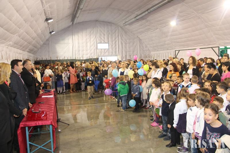 La festivitatea de deschiderea a noului an şcolar a fost prezent viceprimarul Ovidiu Mureşan, care a mulţumit Asociaţiei de Părinţi pentru iniţiativa avută. Reamintim faptul că lucrările pentru amplasarea terenului de sport pe structură metalică acoperită cu prelată din PVC, prin executarea fundaţiilor structurii metalice au început în anul 2013, contribuţia Asociaţiei de Părinţi ridicându-se la 133.500 lei, ceea ce reprezintă aproximativ 25% din întreaga investiţie. Astfel, din aceşti bani s-a achiziţionat structura metalică ce a fost acoperită cu prelată din PVC. Lucrările decontate de municipalitate prin Administraţia Imobiliară Oradea au fost: fundaţiile pentru stâlpii metalici, respectiv buloanele de ancorare a structurii metalice, prelata din PVC, platforma din beton cu şapă, racordul la curent electric, termoizolarea prelatei din PVC peste structura metalică a terenului de sport, achiziţionarea unui generator de căldură alimentat cu gaze naturale. Până ieri dimineaţă nu fusese încă pusă pardoseala.