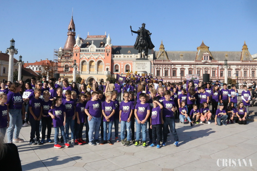 Orădenii care s-au plimbat ieri, în jurul amiezii, pe Republicii, au putut vedea sute de elevi de la Școala Gimnazială „Oltea Doamna” îmbrăcați în tricouri mov cu inscripția „100 Oltea Doamna – Tradiţie şi performanţă”. Elevii veneau de la un flashmob, care s-a desfășurat în Piața Unirii și la care au participat nu mai puțin de 900 de tineri. Împreună cu profesorii și directoarea Florina Muscă, copiii au dansat pe piesa „Can’t stop the feeling” interpretată de Justin Timberlake.