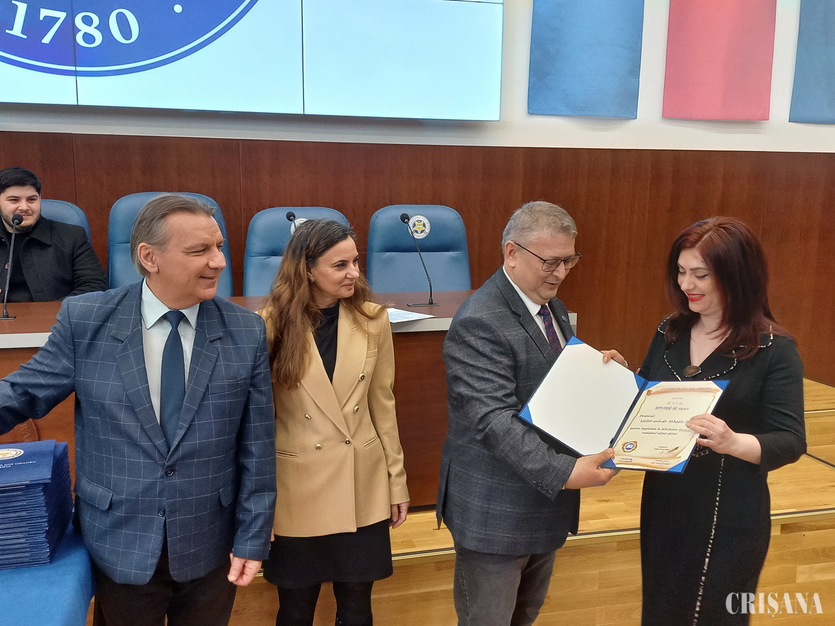 Președintele Senatului Universității din Oradea, împreună cu vicepreședintele, prof. univ. dr. Victoria Bogdan, și cu cancelarul general, conf. univ. dr. Ioan Țarcă, au înmânat Diplome de Merit, foștilor senatori.