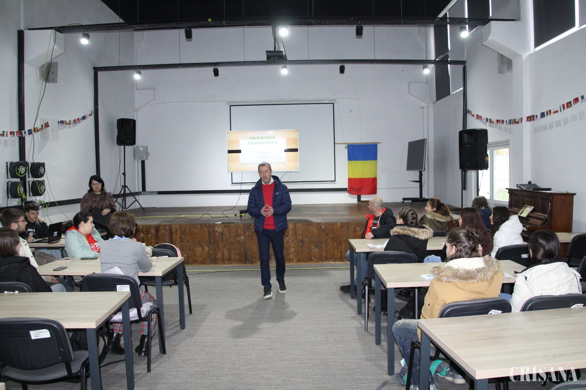 Sala de festivități a Colegiului Național „Avram Iancu” Ștei, a cărui conducere este compusă din profesorii Cristian-Adrian Andru și Cristian-Petru Gavriș, director, respectiv director adjunct, fost găzda lansării unui nou proiect Ersamus+, ce se va derula în această instituție de învățământ.