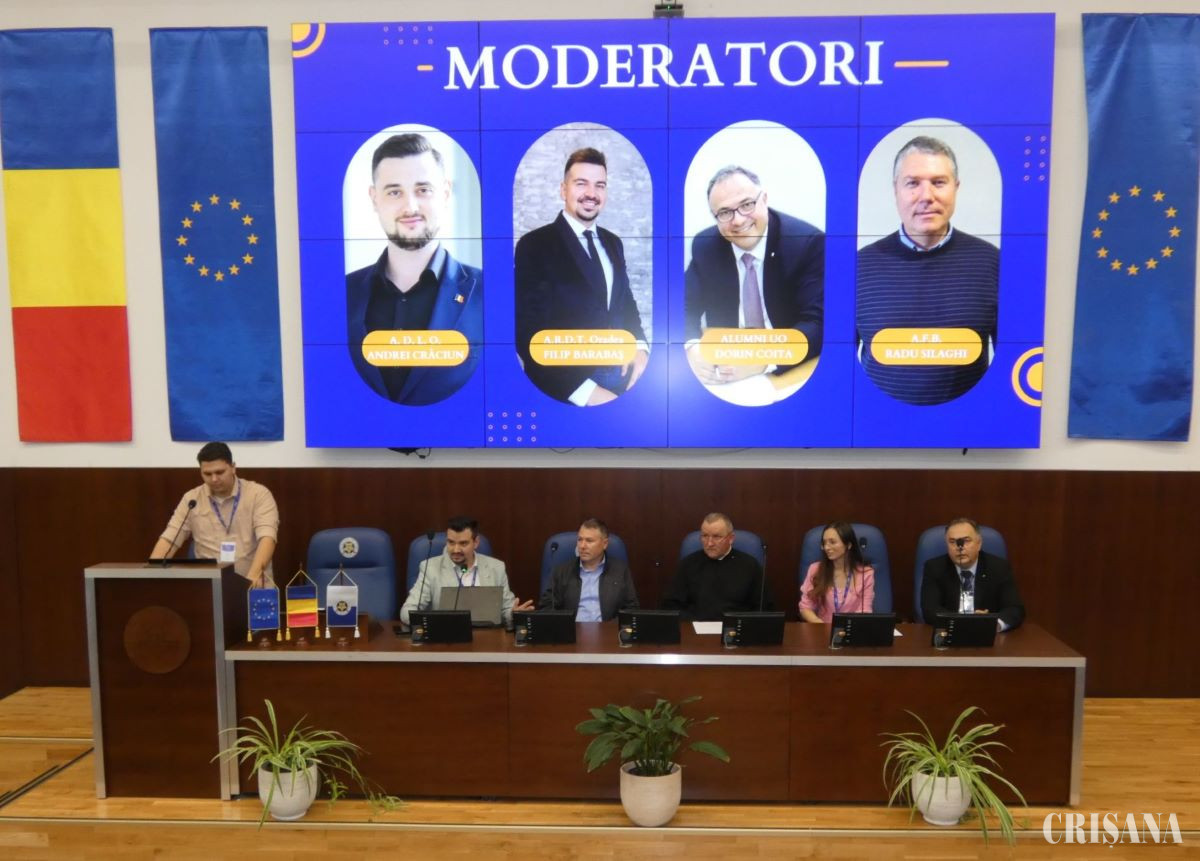„Au fost cei mai buni ani, din punct de vedere profesional, de care am beneficiat”, a zis, de la microfon, Andrei Crăciun, absolvent al Universității din Oradea, șef al unui compartiment din cadrul Agenției de Dezvoltare Locală Oradea și consilier local. El i-a îndemnat pe cei prezenți să se implice pentru a sprijini activitățile organizate de autorități, în anul 2027, când Oradea va fi Capitala Tineretului.