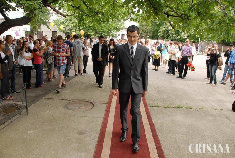 Festivitatea de absolvire a ultimului an de şcoală a elevilor de la "Dimitrie Leonida" a început în jurul orei 9.00, când absolvenţii au păşit, în pereche, în locurile special rezervate lor din careul din curtea şcolii. Îmbrăcaţi de sărbătoare şi purtând baloane colorate în mâini, elevii au ştiut să preţuiască la adevărata valoare momentul. Au aplaudat frenetic imnul liceului, atunci când acesta a fost cântat de corul şcolii şi au ascultat cu interes cuvântarea directoarei. "Pentru noi, profesorii, această etapă înseamnă o nouă acumulare de experienţă, de emoţii şi împliniri trăite alături de voi, în timp ce v-am condus o vreme paşii de-a lungul drumului pe care, cu înţelepciune, îl numim educaţie. Poate că unii dintre voi s-au mai împiedicat, am fost acolo la timp să-i ridicăm şi să-i îndrumăm spre înainte, poate că alţii au păşit mai încet, mai stângaci, am încercat să-i facem să sporească ritmul şi-am reuşit, dar cei mai mulţi dintre voi aţi mers hotărâţi şi fermi până la capăt şi suntem cu toţii mândri de asta. Sperăm ca tot ce aţi învăţat până acum să vă fie de folos, să vă deschidă căi şi uşi în viaţă, dar cel mai important e să vă ajute să vă preţuiţi timpul, pentru că el este materia din care ne este formată viaţa. Preţuiţi cât puteţi aceşti ani frumoşi", a spus directoarea Colegiului, Daniela Vîlceanu. VIP-ul festivităţii, cel care, de altfel, a şi păşit pe covorul roşu de VIP, a fost elevul Radu Sturz, care, pentru că a terminat şcoala cu media 9,49, a fost numit şef de promoţie şi a primit şi o diplomă de onoare. "Încheiem un ciclu important al vieţii noastre şi ne propunem să ajutăm la construirea unei lumi mai bune, mai plină de moralitate", a spus Sturz, care nu a uitat să mulţumească profesorilor şi părinţilor care au fost alături de ei pe parcursul anilor de studii. La final, cei mai buni dintre elevi au primit premii, diplome şi cărţi.