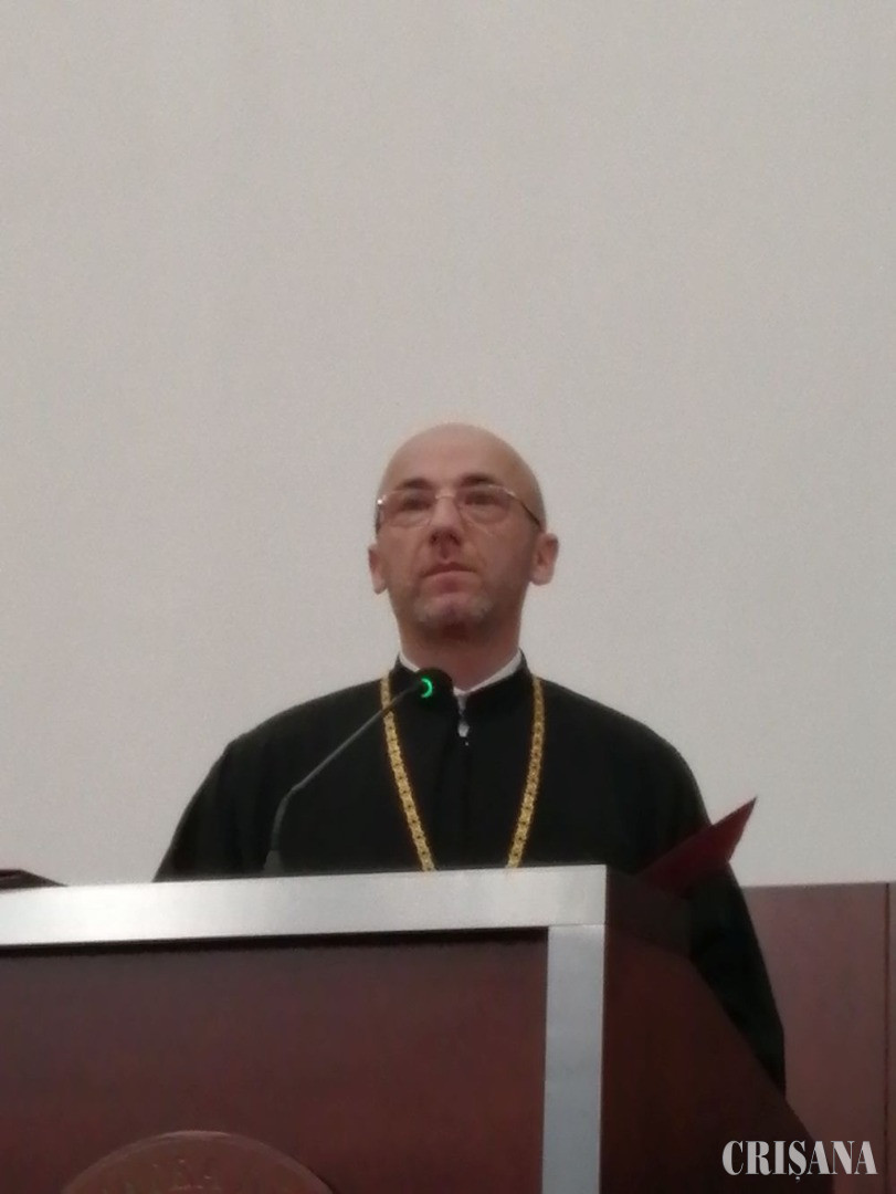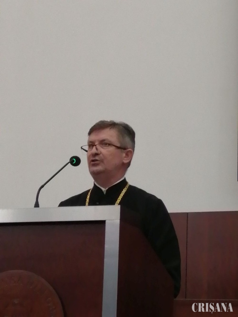 Decanul Facultății de Teologie „Episcop dr. Vasile Coman”, pr. conf. univ. dr. Viorel Popa, a evocat începuturile învățământului universitar teologic ortodox orădean. El a subliniat că Academia Teologică Ortodoxă de la Oradea își datorează existența „vrednicului de pomenire Episcop Roman Ciorogariu”, înființarea acestei școli de credință fiind una dintre prioritățile ierarhului. Viorel Popa a mai amintit că, academia, înființată în anul 1923, era „prima școală teologică din Ardeal, organizată după modelul cernăuțean”. Decanul a readus în memoria celor prezenți anul 1991, când, prin strădania episcopului Vasile Coman, a părintelui conf. univ. dr. Dumitru Abrudan și a rectorului de atunci al Universității, prof. univ. dr. Teodor Maghiar, a fost înființată Facultatea de Teologie, care poartă astăzi numele ierarhului ortodox ce i-a fost părinte. De la înființare, facultatea a dat, după cum spune decanul ei, „treizeci de generații de absolvenți”.