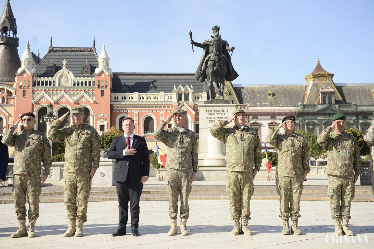 Piaţa Unirii din Oradea a găzduit, joi, ceremonia de depunere a jurământului militar de către studenții Institutul Medico - Militar București, în anul universitar 2024-2025, care urmează programul de pregătire în cadrul Facultății de Medicină și Farmacie a Universității din Oradea.