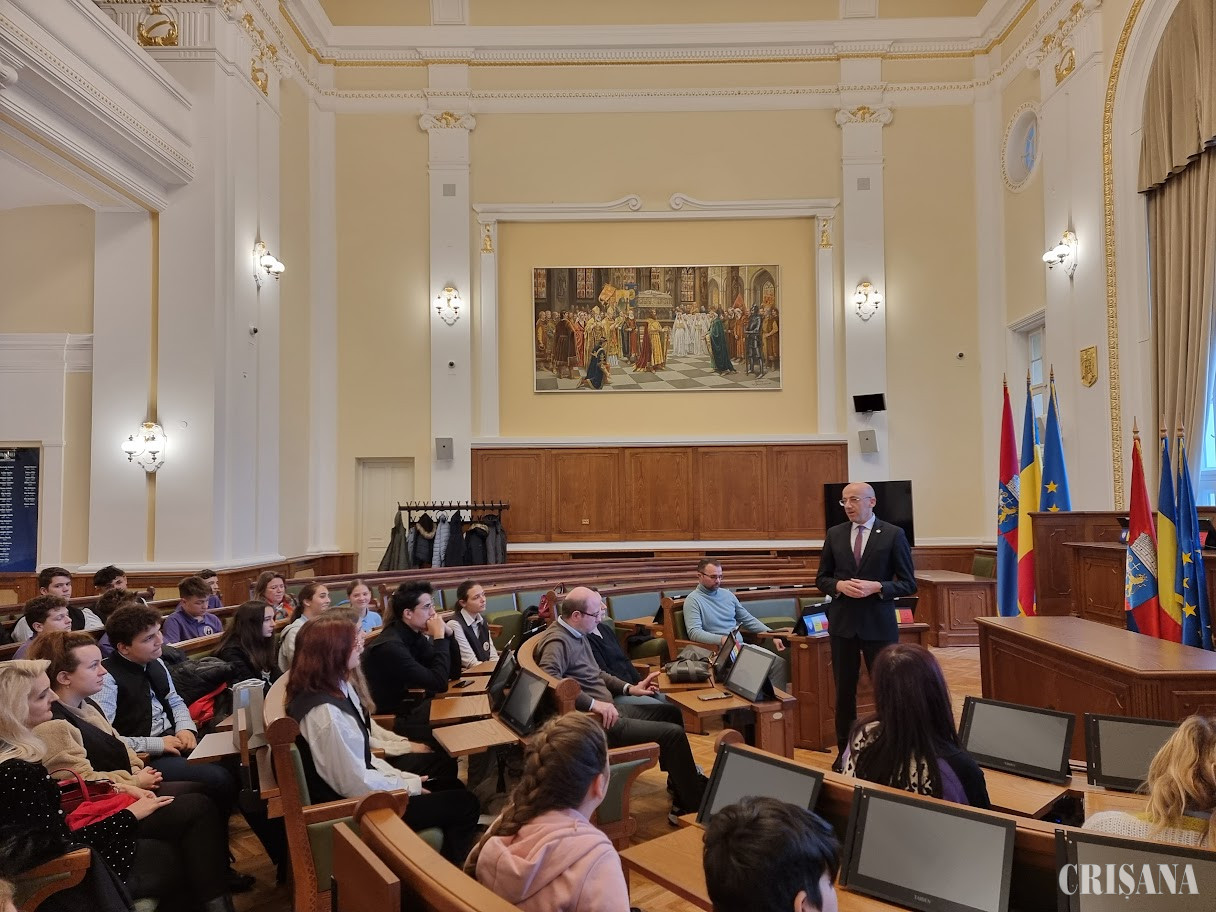 Cadrele didactice din Italia au fost însoțite în vizita la Primărie de un grup de elevi și profesori de la Liceul Ortodox.