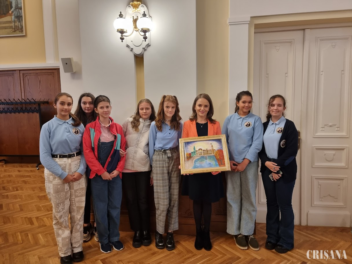 La finalul întâlnirii, elevii de la Liceul Ortodox i-au dăruit viceprimarului Antonia Nica un tablou pictat chiar de ei, cu imaginea Primăriei Oradea.