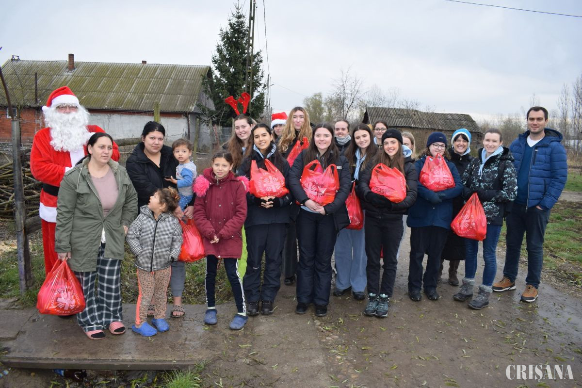 Elevele engleze au luat parte la o serie de activități de voluntariat de-a lungul săptămânii. Luni, 11 decembrie, au distribuit pachete cu alimente durabile în comunități afectate de sărăcie din comuna Sălacea. Echipa a fost călăuzită de primarul comunei, Béla Horváth. Tinerele voluntare engleze, au arătat un nivel ridicat de empatie și deschidere, petrecând ore lungi călcând prin noroi, vizitând familii nevoiașe din casă în casă, vorbind direct cu oamenii și încercând să aducă bucurie în viața beneficiarilor cu apropierea lor și câteva cuvinte bune, pe lângă înmânarea pachetelor cadou. Atmosfera a fost și mai veselă datorită faptului că echipa a fost însoțită de un Moș Crăciun, îmbrăcat în haine autentice, și un spiriduș – personificate de oaspeții străini, care au făcut bucurie nu doar pentru copiii vizitați, ci și pentru adulții din comunitate.