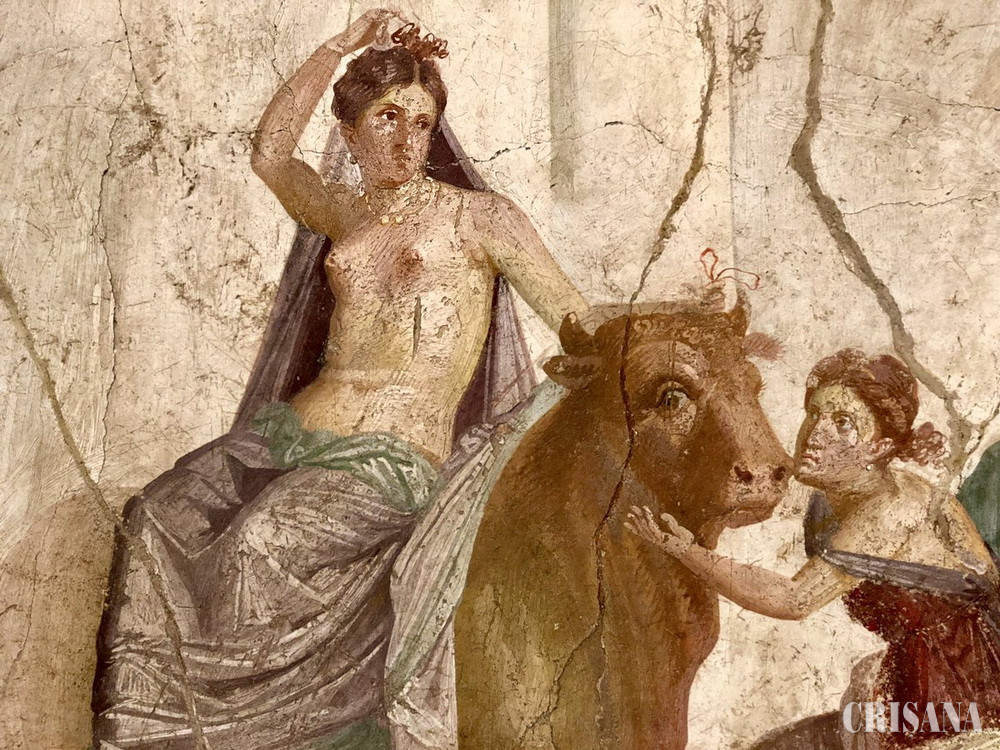 Legenda spune că Zeus, transformat într-un taur alb, ar fi răpit-o pe Europa și a dus-o în insula Creta la confluența Mării Egee cu Marea Mediterană. Acolo i-a dăruit trei fii: pe Minos, Rhadamanthus și Sarpedon. Fratele Europei, Cadmos, pornește în căutarea surorii sale, dar e sfătuit de oracolul de la Delphi să n-o mai urmărească, ci să fugărească o junincă și acolo unde aceasta va cădea de oboseală să întemeieze o cetate. Este vorba despre cetatea Teba din Beoția grecească, diferită de cea egipteană, devenită ulterior cetatea nefericitei familii a Labdacizilor, a lui Oedip rege și urmașilor săi, Iocasta, Eteocle, Polinice, Antigona, Ismena. Se spune despre legendarul Cadmos că ar fi dăruit grecilor scrierea, una dintre marile achiziții ale culturii și civilizației antice, care a favorizat comunicarea și legătura între generații. Istoria politică și culturală a Europei începe în insula Creta (secolul XV î. e. n.) aproximativ când unii istorici spun că, puțin mai târziu, profetul Moise se pregătea să iasă din robia Egiptului și să se îndrepte spre Țara Făgăduinței, Canaan, după numele nepotului lui Noe, fiul lui Ham. Insula era locuită de filisteni, de origine anatoliană (Turcia asiatică de astăzi), dar au fost izgoniți de triburile grecești ale dorienilor pe țărmurile vechiului Canaan, care a luat numele de Palestina. Regele cretan Minos, ca să nu împartă tronul cu frații săi, cere ajutor zeului mărilor Poseidon, care face să iasă din apele mării, la porunca lui Minos, pentru a câștiga încrederea supușilor săi, un taur de o frumusețe neobișnuită, cu promisiunea că-l va sacrifica apoi în cinstea zeului. Minos nu se ține de cuvânt, taurul îi pustiiește țara, iar soția acestuia Pasiphae nutrește o pasiune nefirească față de taur, din împreunarea cărora se va naște Minotaurul, creatură fabuloasă, jumătate om, jumătate taur. Minos reușește să închidă făptura în castelul regal din Cnossos, nu departe de capitala Heraclion, construit de arhitectul Daedalus cu interioare în formă de labirint, de încăperi și galerii încurcate în așa fel încât cel care intră să nu mai poată ieși. Cu timpul centrul lumii cretane sau minoice se va muta în partea peninsulară a Greciei, în Peloponez, în cetățile Micene, Sparta, dar și Atena din provincia Atica. Într-una dintre numeroasele confruntări și expediții împotriva Atenei, fiul lui Minos, Androgeus, este ucis, dar atenienii sunt înfrânți și siliți să plătească un tribut anual de șapte tineri și șapte tinere drept hrană pentru Minotaur. Egeus, regele cetății Atena, își trimite fiul Teseus să ucidă Taurul lui Minos. Neînfricatul Tezeu intră în labirint, ucide taurul și cu ajutorul unui fir călăuzitor al Ariadnei, fiica lui Minos, care se îndrăgostise de el, reușește să iasă din labirint pe unde a intrat, izbăvindu-i astfel pe atenieni de sângerosul tribut, numai că, la întoarcere, uitând să arboreze steagul alb al victoriei, tatăl Egeus, de necaz, se aruncă în marea care-i poartă numele. De altfel, în limba greacă veche egea însemnă capră, animal obișnuit prin părțile locului.