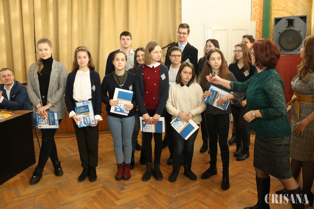 Peste 200 de elevi și profesori au participat marți, de la ora 10.00, în sala festivă a Colegiului, la serbarea patronului spiritual al școlii, Mihai Eminescu. Pe lângă directoarea Livia Muntean, care a moderat evenimentul, au mai fost invitați rectorul Academiei Naționale de Informații „Mihai Viteazul”, prof. univ. dr. Adrian-Liviu Ivan, viceprimarul Oradiei – Mircea Mălan și adjuncta Inspectoratului Școlar Județean Bihor – Codruța Bogdan. Primul care a vorbit a fost viceprimarul, care i-a îndemnat pe elevi să caute rațiunea de a fi care se ascunde în spatele lui „este”, pornind de la afirmația lui Eminecu cum că „orice „este”, are o rațiune de a fi”.