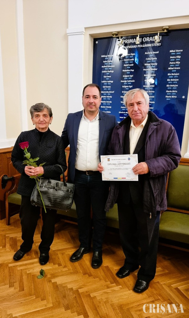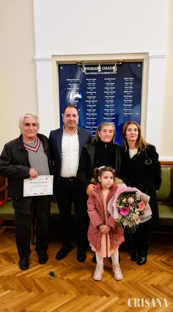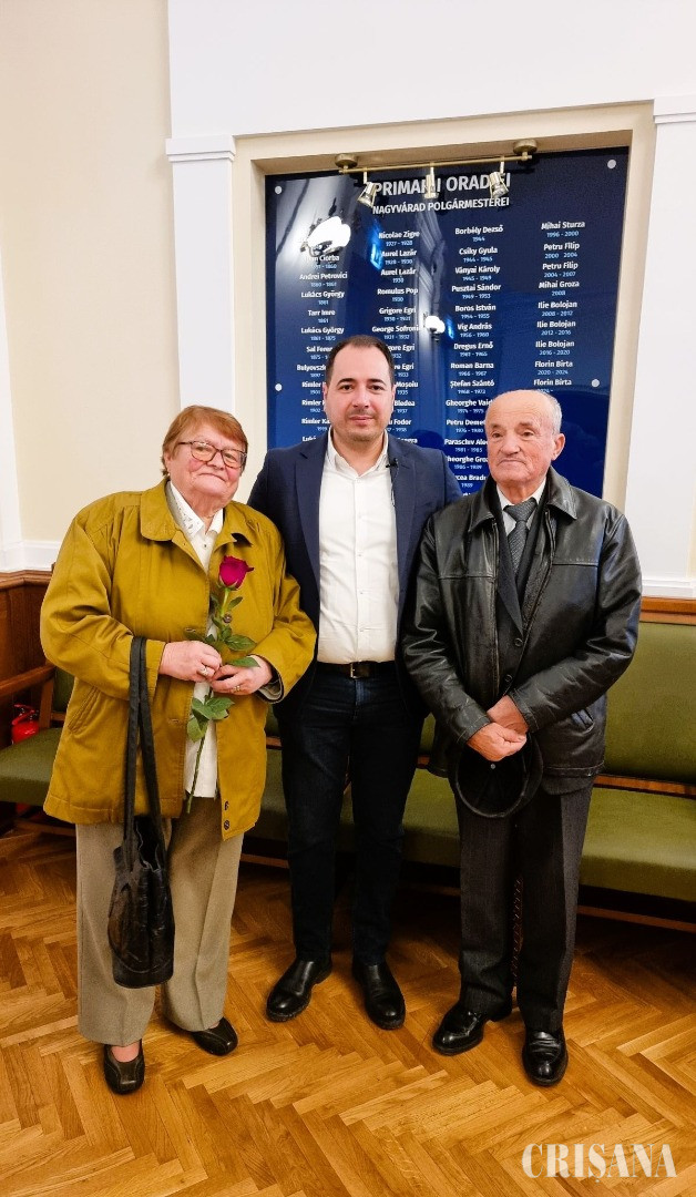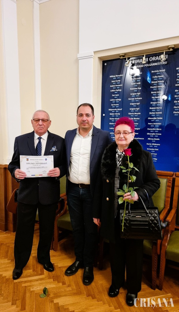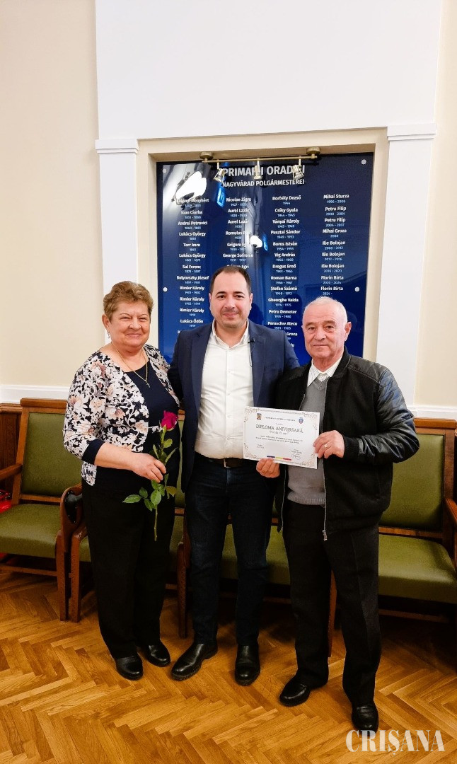 „Municipalitatea orădeană apreciază profund angajamentul d-voastră, care este un simbol al statorniciei și al iubirii neîntrerupte, un model de viață pe care ni-l oferiți. Gestul nostru de astăzi este doar un mod prin care dorim să vă arătăm că sunteți prețuiți și că povestea dumneavoastră are un loc important în inima orașului nostru. Dragi sărbătoriți, astăzi ne înclinăm cu respect în fața voastră. Vă dorim să continuați acest drum cu sănătate, liniște și bucurie alături de cei dragi. Sperăm ca anii care vin să fie tot atât de frumoși și plini de iubire ca și cei pe care i-ați petrecut împreună până acum.”