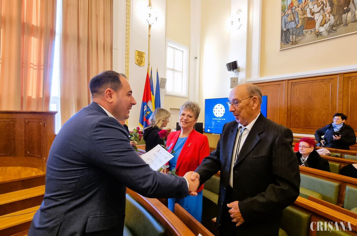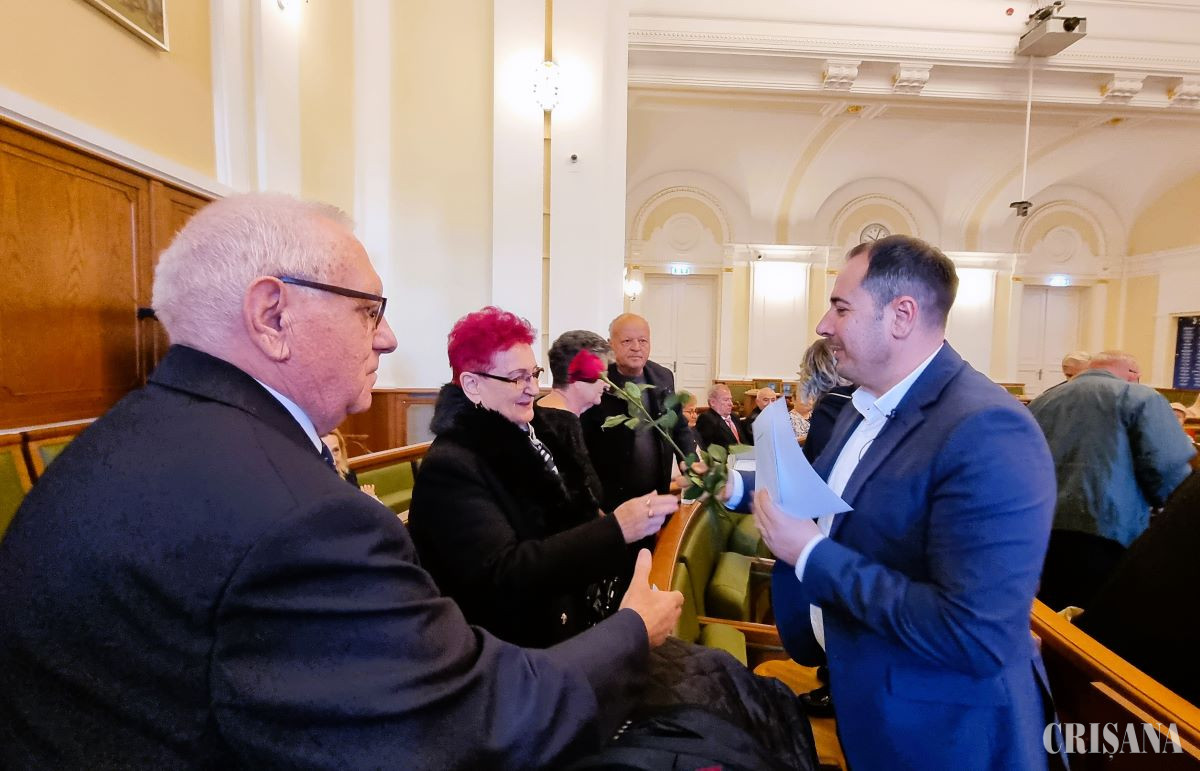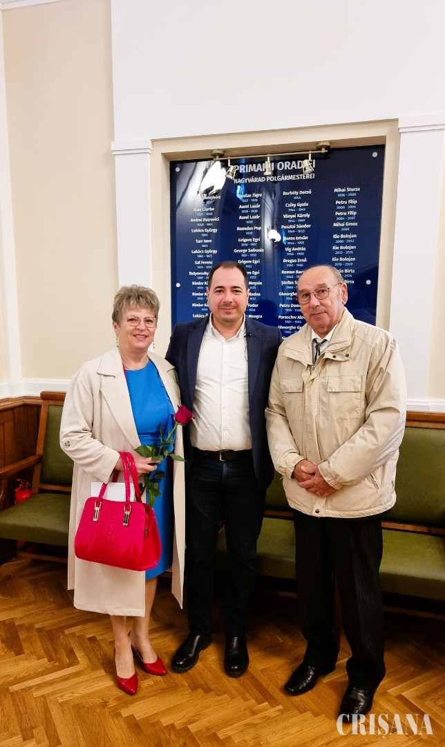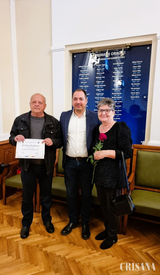„Municipalitatea orădeană apreciază profund angajamentul d-voastră, care este un simbol al statorniciei și al iubirii neîntrerupte, un model de viață pe care ni-l oferiți. Gestul nostru de astăzi este doar un mod prin care dorim să vă arătăm că sunteți prețuiți și că povestea dumneavoastră are un loc important în inima orașului nostru. Dragi sărbătoriți, astăzi ne înclinăm cu respect în fața voastră. Vă dorim să continuați acest drum cu sănătate, liniște și bucurie alături de cei dragi. Sperăm ca anii care vin să fie tot atât de frumoși și plini de iubire ca și cei pe care i-ați petrecut împreună până acum.”