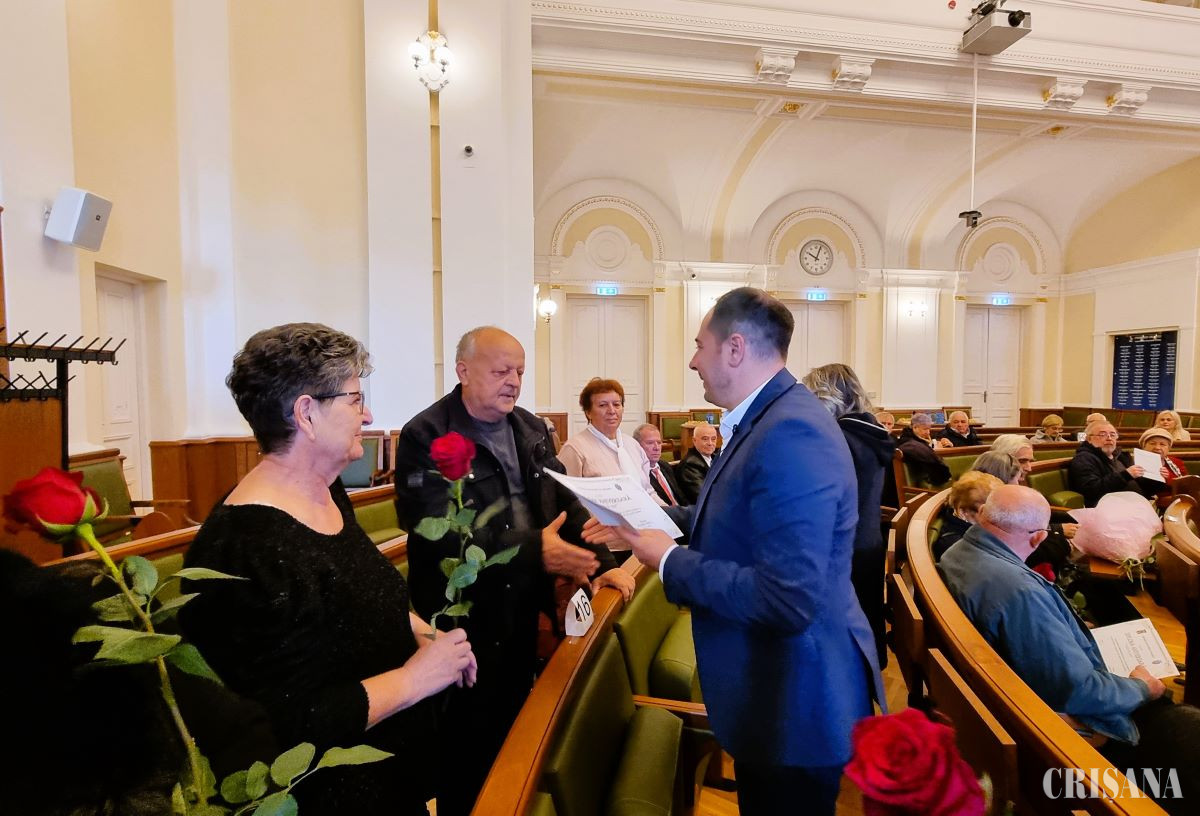 În cadrul festivității, fiecare cuplu a primit o diplomă aniversară, flori și un premiu în valoare de 1.000 de lei, oferite de Primăria Oradea.