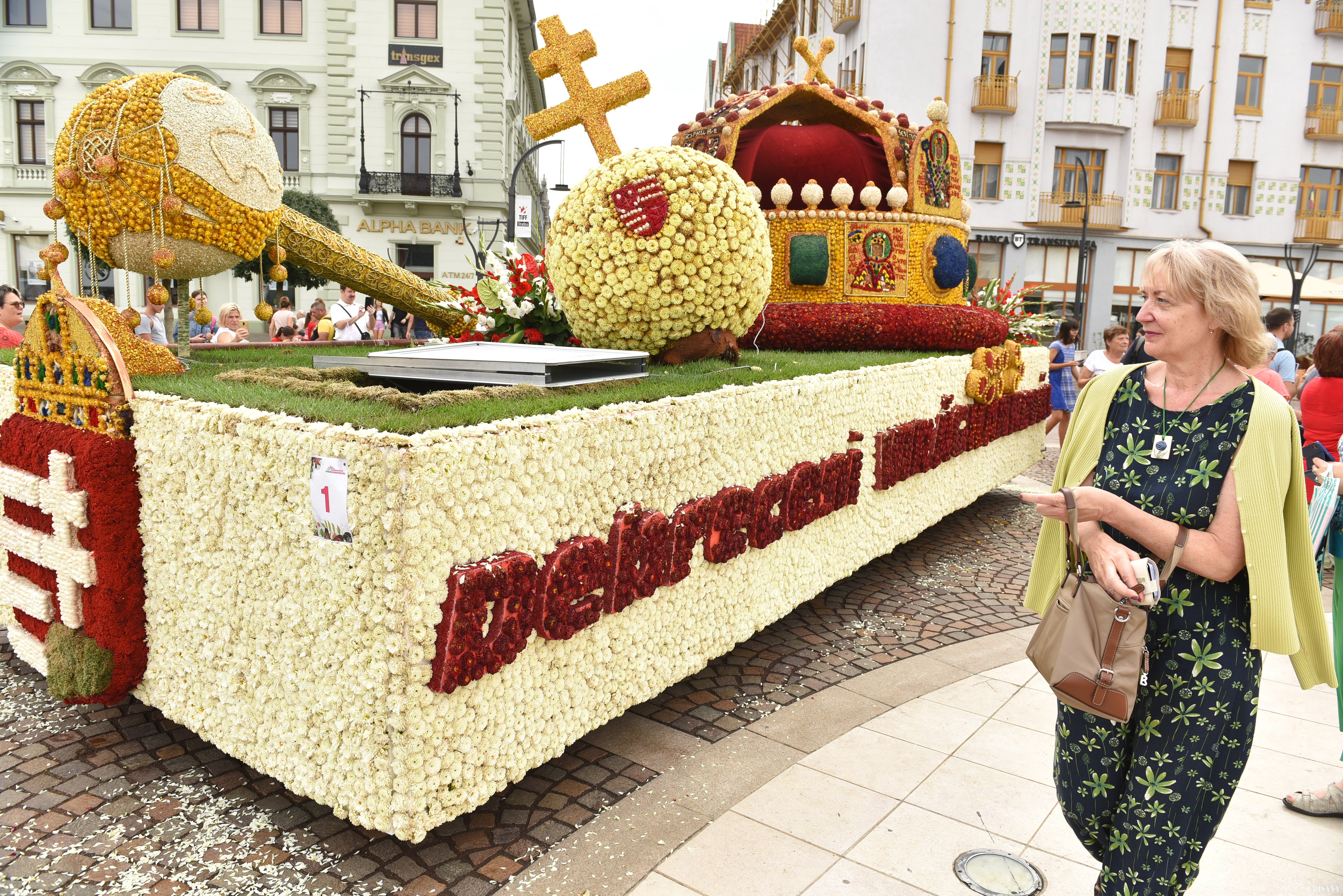 Expoziţia carelor alegorice a cuprins un car al orașelor Oradea și Debrețin, coroana Sfântului Ștefan, carul Teatrului Național Maghiar și carul Centrului pentru Dezvoltarea Învățământului Profesional Debrețin. Carul alegoric al orașelor Oradea și Debrețin a simoblizat detalii ale unei clădiri iconice din Oradea: Cetatea medievală. Totodată acesta a făcut referire și la relația dintre cele două orașe prin ornamente zoomorfe ale grifonilor și păsării Phoenix.