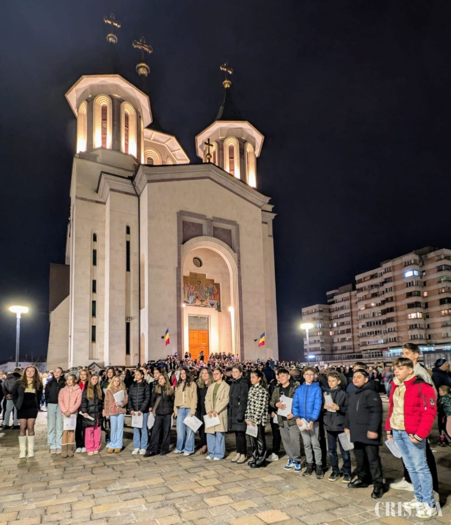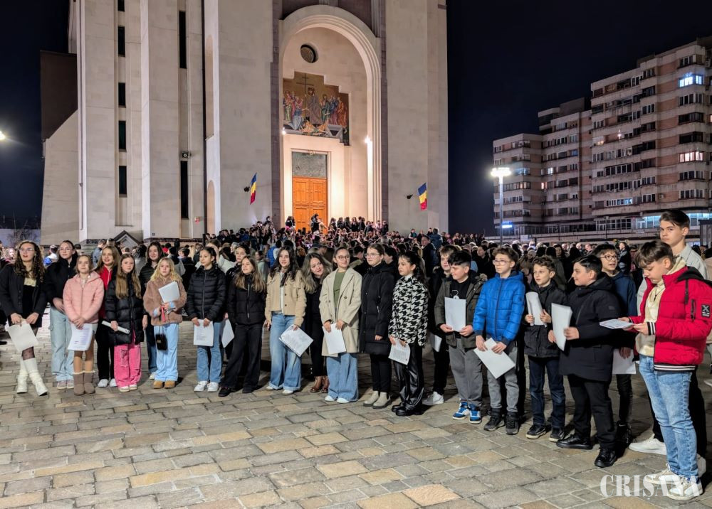 La Oradea, 800 de copii și peste 1.500 de spectatori au cântat, duminică seara, pe platoul Catedralei Ortodoxe din Centrul Civic, pentru a marca Ora Pământului.