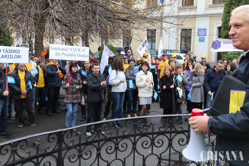 Protestatari din Sindicatele Energetica, UAMT, Petrom, Electrocentrale, Penitenciare, administraţie publică sau sănătate au scandat ieri, timp de o oră şi jumătate, în Parcul Traian, principala lor nemulţumire fiind trecerea contribuţiilor sociale de la angajator la angajat, începând cu 1 ianuarie 2018. „Nu avem certitudinea că patronii vor mări salariul brut. De ce nu s-a dat o lege care să oblige angajatorul să mărească brutul, pentru că unii vor majora, alţii, ba. Şi mai mult, chiar dacă vor face acest lucru, e vorba de majorări salariale nete de 2 lei. Apoi, ce se întâmplă dacă angajatorul nu va vira statului contribuţia aferentă angajatului şi ne vom trezi cu contribuţiile la pensii şi sănătate neachitate. Suntem singurul stat din lumea civilizată unde contribuţiile nu sunt suportate de angajator, ci de angajat”, preciza liderul BNS Bihor, Nicolae Morgovan, în faţa protestatarilor, care scandau „Ruşine!”, „Ruşine”. De asemenea, liderul BNS a pus accent pe o altă mare durere a românilor din ultima vreme, şi anume cea a majorării preţului alimentelor. „A scăzut TVA-ul la alimente, au spus că va scădea şi preţul la raft. Dimpotrivă. În loc să fie aşa, preţul alimentelor a explodat”, afirma Nicolae Morgovan. La rândul său, Corneliu Fofiu, secretar general în cadrul BNS Bihor, a precizat că, prin măsurile propuse, Guvernul încurajează nemunca. „Vom fi o ţară de asistaţi sociali”, a spus acesta. O delegaţie de sindicalişti, condusă de liderul BNS Bihor, Nicolae Morgovan, a urcat la prefectul Ioan Mihaiu şi a comunicat revendicările, acesta asigurându-i că le va transmite Guvernului. Protestul de la Oradea va fi urmat de alte mişcări de protest în ţară şi va culmina cu un miting la Bucureşti sau chiar cu declanşarea grevei generale.