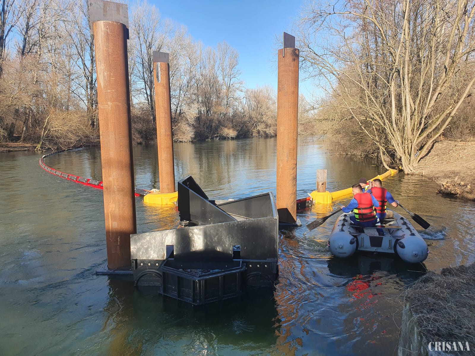 Capcană de colectare a deșeurilor plutitoare din Crișul Repede - Inaugurare în prezenţa ministrului