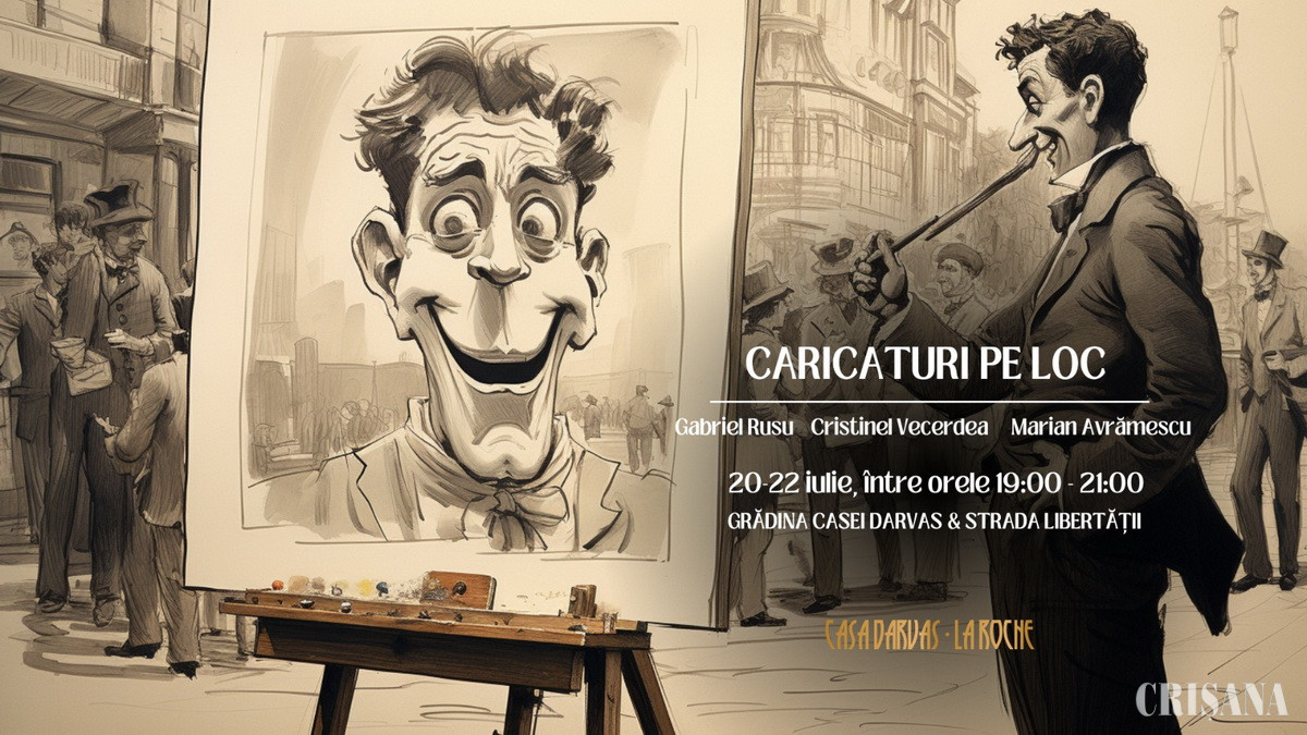 Autorii portretelor - artiștii Marian Avramescu, Gabriel Rusu și lt.col. (rtg) Cristinel Vecerdea – Criv, au realizat caricaturi pe loc pentru cei care au dorit să rămână cu o amintire frumoasă. Activitatea artistică s-a desfășurat și pe strada Libertății, în proximitatea Casei Darvas. Evenimentul „Caricaturi pe loc” va continua astăzi, 21 iulie, și mâine, 22 iulie, între orele 19.00- 21.00, intrarea fiind liberă.