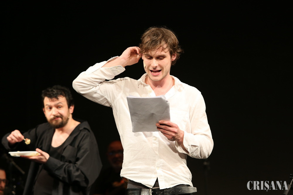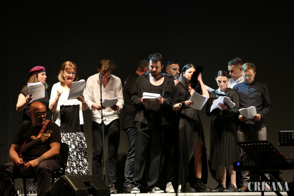 Actori români şi maghiari ai celor două teatre orădene au susţinut vineri un performance inedit, organizat şi creat în doar câteva zile. Spectacolul - concert a fost inspirat din criza declanşată de preşedintele Consiliului Judeţean Bihor, Ilie Bolojan, o dată cu asumarea planului de comasare al instituţiilor.