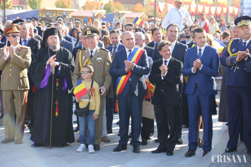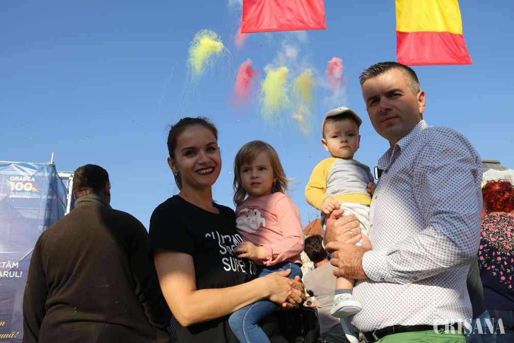 Apoi a urmat o surpriză, orădenii fiind poftiţi să admire un spectaculos foc de artificii de zi. Exploziile asurzitoare au acoperit cerul senin al oraşului în roşu, galben şi albastru, spre încântarea miilor de participanţi la manifestări.