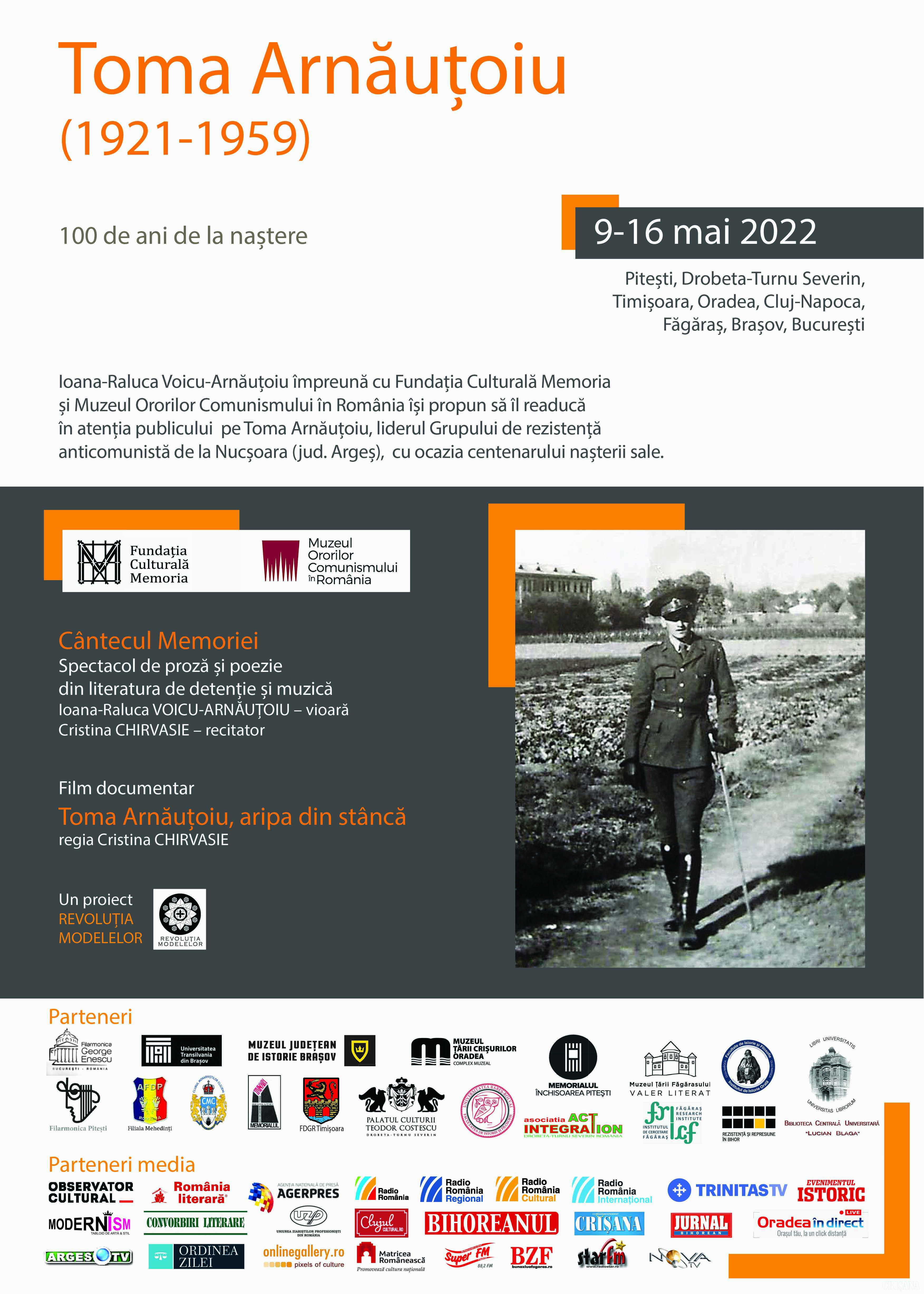 În Oradea, evenimentul va avea loc în data de 12 mai, de la ora 17.00, în Cetatea Oradea, Corp E, etaj 1, intrarea fiind liberă. Partenerii locali ai evenimentului sunt Muzeul Ţării Crişurilor - Complex Muzeal şi Asociaţia Cei 40 de Mucenici Ioana-Raluca Voicu-Arnăuțoiu împreună cu Fundația Culturală Memoria și Muzeul Ororilor Comunismului în România își propun să îl readucă în atenția publicului pe Toma Arnăuțoiu (1921-1959), liderul Grupului de rezistență anticomunistă de la Nucșoara (jud. Argeș), cu ocazia centenarului nașterii sale. Evenimentul va cuprinde: un spectacol de proză și poezie din literatură de detenție și muzică, intitulat Cântecul Memoriei (Ioana-Raluca Voicu-Arnăuțoiu - vioară și Cristina Chirvasie - recitator), cu o durată de 30 minute; filmul Toma Arnăuțoiu, aripa din stâncă (r. Cristina Chirvasie, 2021) - 35 min şi discuţii cu publicul. Proiectul, demarat în anul 2021, are un caracter educațional și se adresează tuturor celor interesați de istoria recentă şi de istoria comunismului în România, indiferent de vârstă. În anul 2022 evenimentul va fi itinerat în următoarele oraşe: Pitești, Drobeta-Turnu Severin, Timișoara, Oradea, Cluj-Napoca, Făgăraș, Braşov şi Bucureşti.