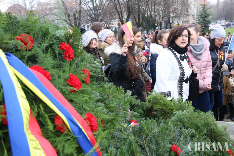 Sute de orădeni, de toate vârstele, au participat, vineri, la ceremonia militară dedicată sărbătoririi Zilei Naţionale, în ciuda faptului că în acest an nu a fost organizată şi o defilare de amploarea celor din anii precedenţi.