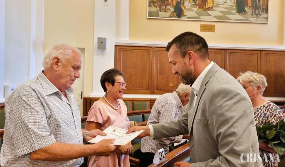 27 de cupluri din Oradea au fost premiate miercuri, 25 iunie, cu ocazia evenimentului „Nunta de Aur”. Fiecare cuplu a primit o diplomă aniversară, flori și un premiu în valoare de 1.000 de lei.