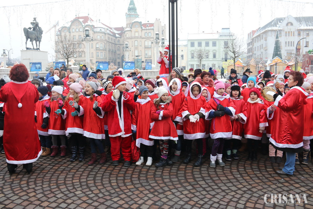 Evenimentul a început la ora 10.00, când, alături de părinți și profesori, copiii din clasele 0-IV de la Liceul Greco-Catolic „Iuliu Maniu” au plecat la colindat. La ora 12.00, micuții au stârnit aplauze din parte trecătorilor, pe strada Republicii, când s-au deplasat spre magazinul Crișul.