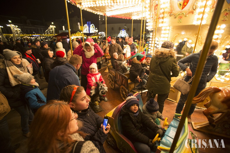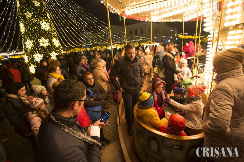 Peste 5.000 de orădeni s-au adunat în Piața Unirii joi seara, pentru a fi martori la cel mai așteptat moment: aprinderea luminițelor de Crăciun. Copii și adulți s-au îndreptat apoi spre patinoar și carusel, făcând câte un popas în fața căsuțelor din lemn, unde se vând podoabe, dulciuri, cărți, vin sau mâncare. Seara a fost completată de un recital susținut de artista Paula Seling.